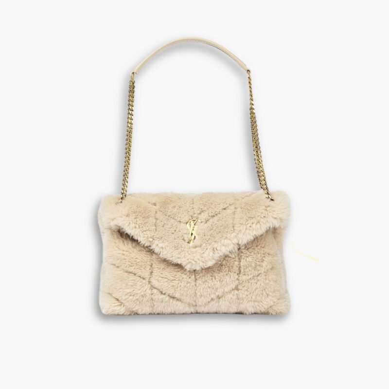 Saint Laurent Loulou Shearling Puffer Bag Beige 28cm