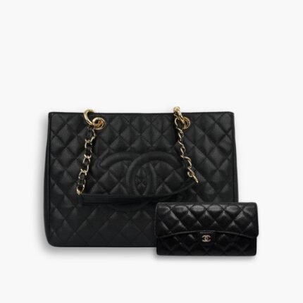 Perfect Match: Chanel Grand Shopping Tote Black 33cm X Chanel Classic Long Flap Wallet Black 19cm