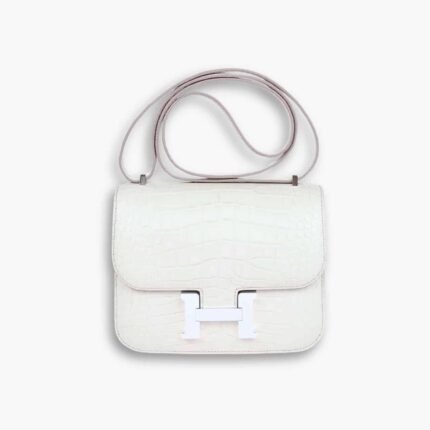 Hermès Mini Constance 19 Shiny Alligator White Palladium Hardware