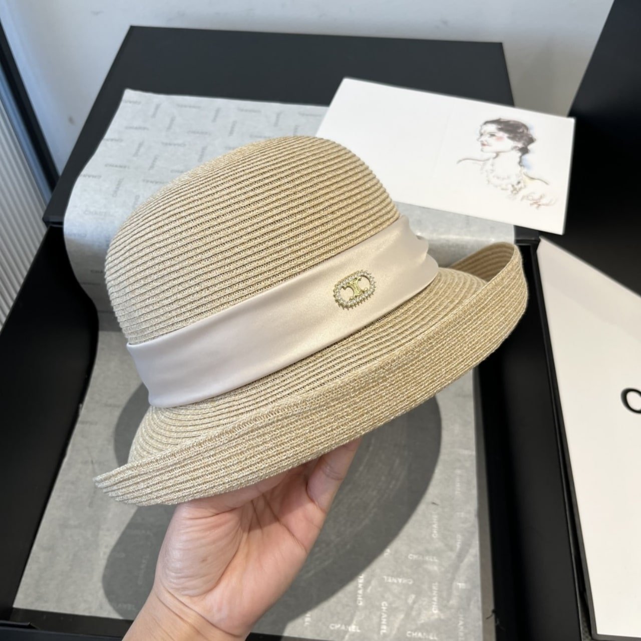 Replica 1:1 – Celine Raffia Curled Brim Hat With Satin White