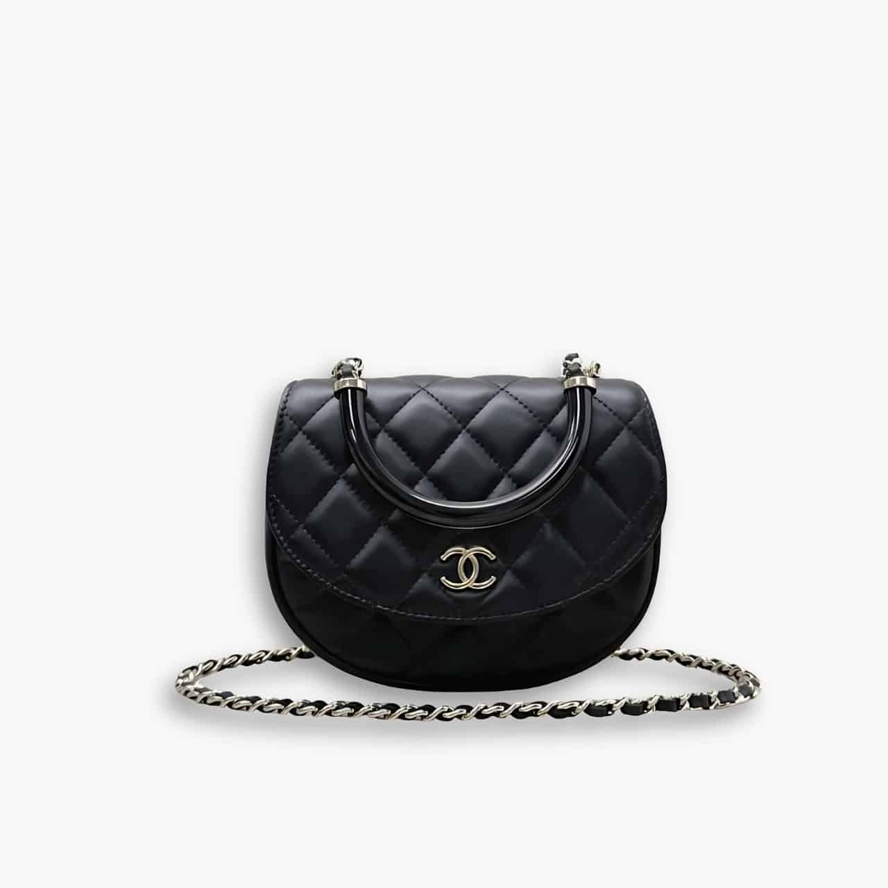 Replica 1:1 – Chanel 25C Classic Clutch With Chain Black 16Cm The Chanel 25C Classic Clutch With Chain Black 16Cm is a charming mini bag crafted in signature leather. Featuring a curved silhouette, top handle, and iconic CC logo, it’s finished with a leather-interwoven chain strap for versatile wear—elegant by hand or chic crossbody. Product Details: – Dimension: 16 x 12 cm/ 6.3 x 4.7 inches – Color: Black – Silver-tone metal – Logo: Classic CC turn-lock on the front flap This item is crafted with the highest quality, offering a near-identical replica experience. Comes with a box and dust bag (for items over 40 cm, box availability may vary depending on size). Production Time: 3-5 working days
