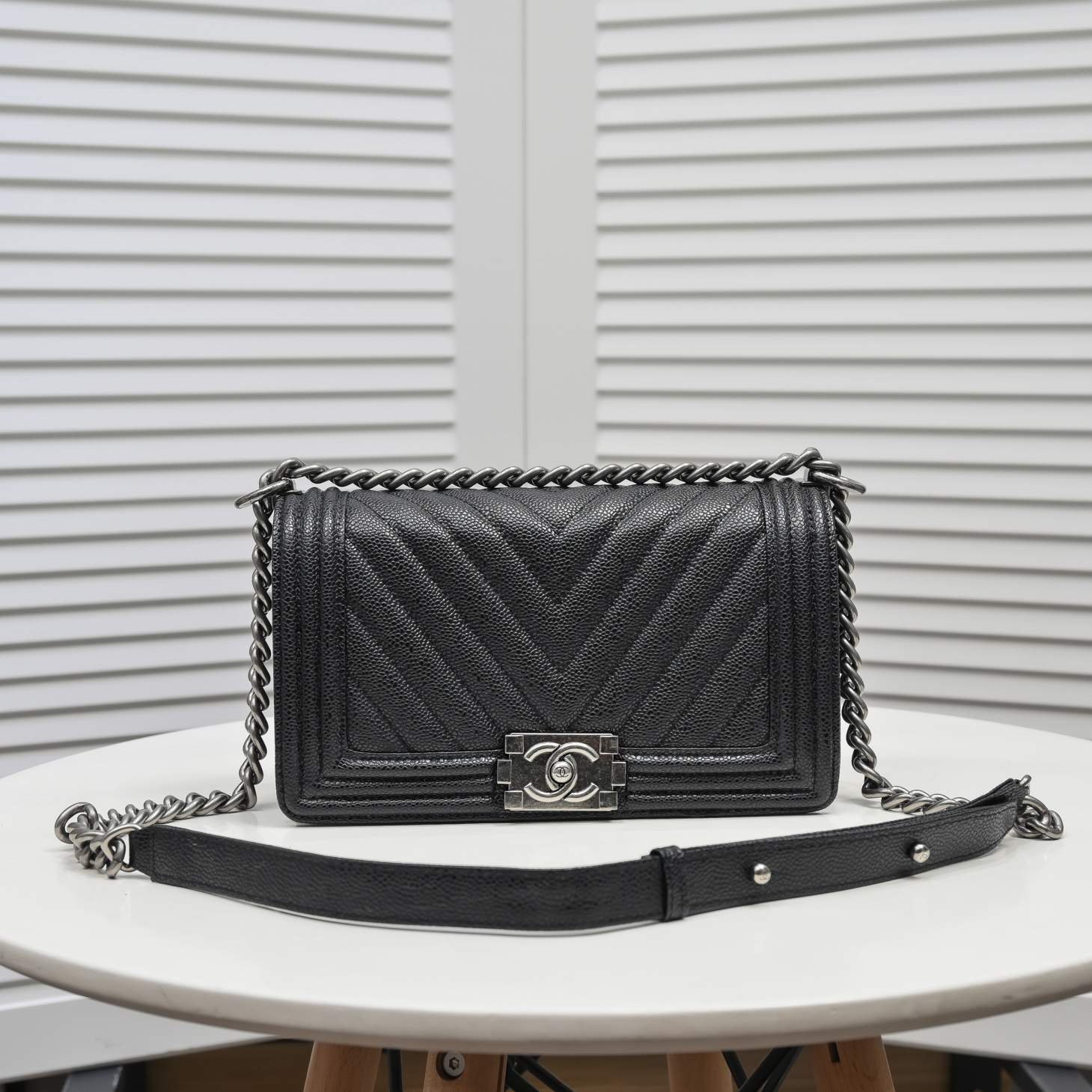 Be the first to review “Chanel Boy Chevron Medium Handbag Black 25cm”