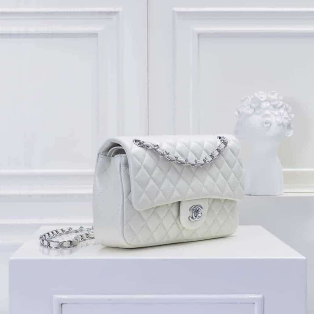 Replica 1:1 – Chanel Classic Double Flap Bag White Silver Hardware 25cm Suddenly dressing up for the day feels effortless—especially with the Chanel Classic Double Flap Bag. Crafted in elegant white leather with silver-tone hardware, this icon features the signature diamond quilting, CC turn-lock closure, double flap interior, and a timeless chain strap that transitions seamlessly from day to night. Product Details: – Dimension: 25.5 x 15 x 7.5 cm / 10.0 x 5.9 x 3.0 inches – Color: White – Signature silver-tone CC turn-lock closure – Diamond leather for timeless elegance – Double flap design with inner zip and slip pockets – Interwove and chain shoulder strap for versatile styling – Refined silhouette perfect for both day and evening wear This item is crafted with the highest quality, offering a near-identical replica experience. Comes with a box and dust bag (for items over 40 cm, box availability may vary depending on size). Production Time: 3-5 working days