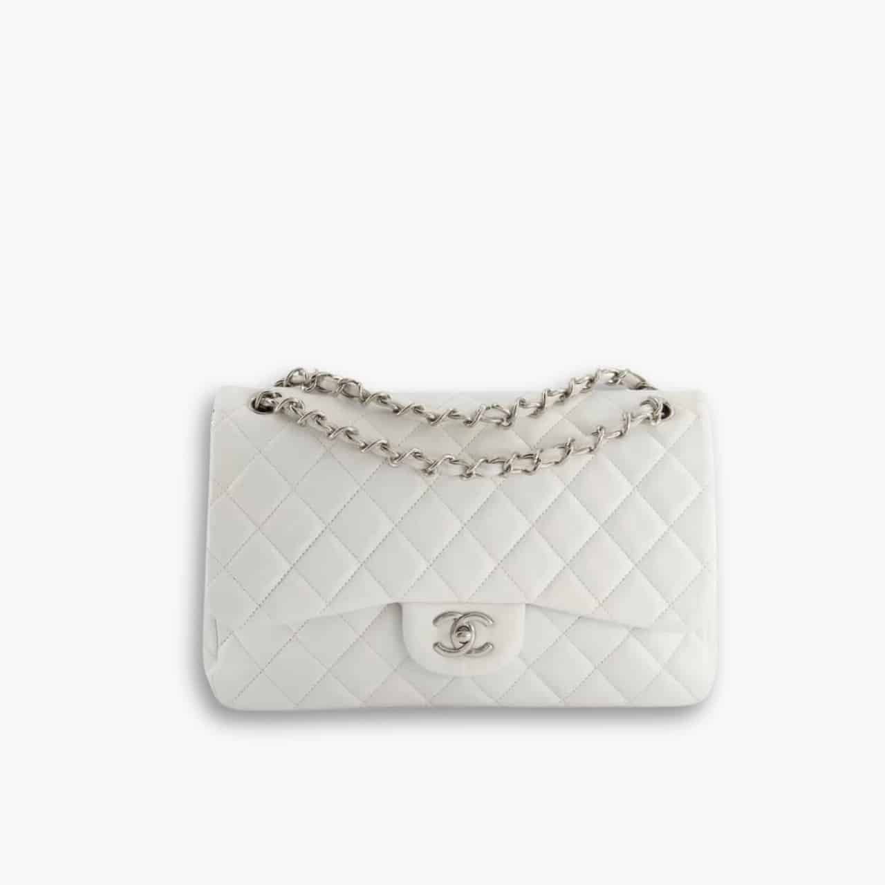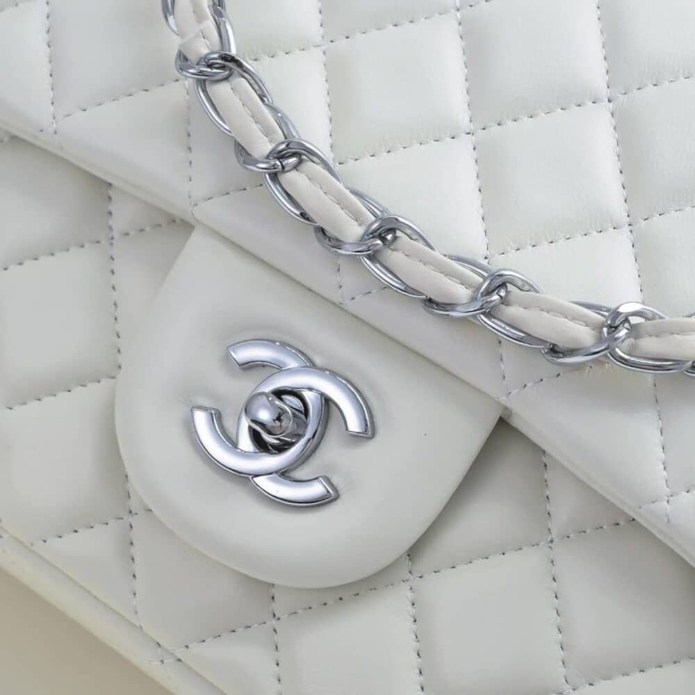 Chanel Classic Double Flap Bag White Silver Hardware 25cm