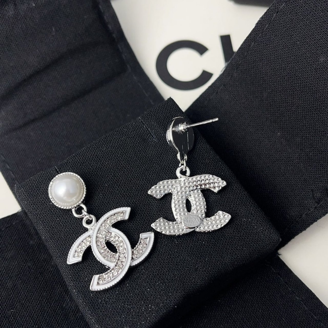 Replica 1:1 – Chanel Double C Pearl Earrings Silver White