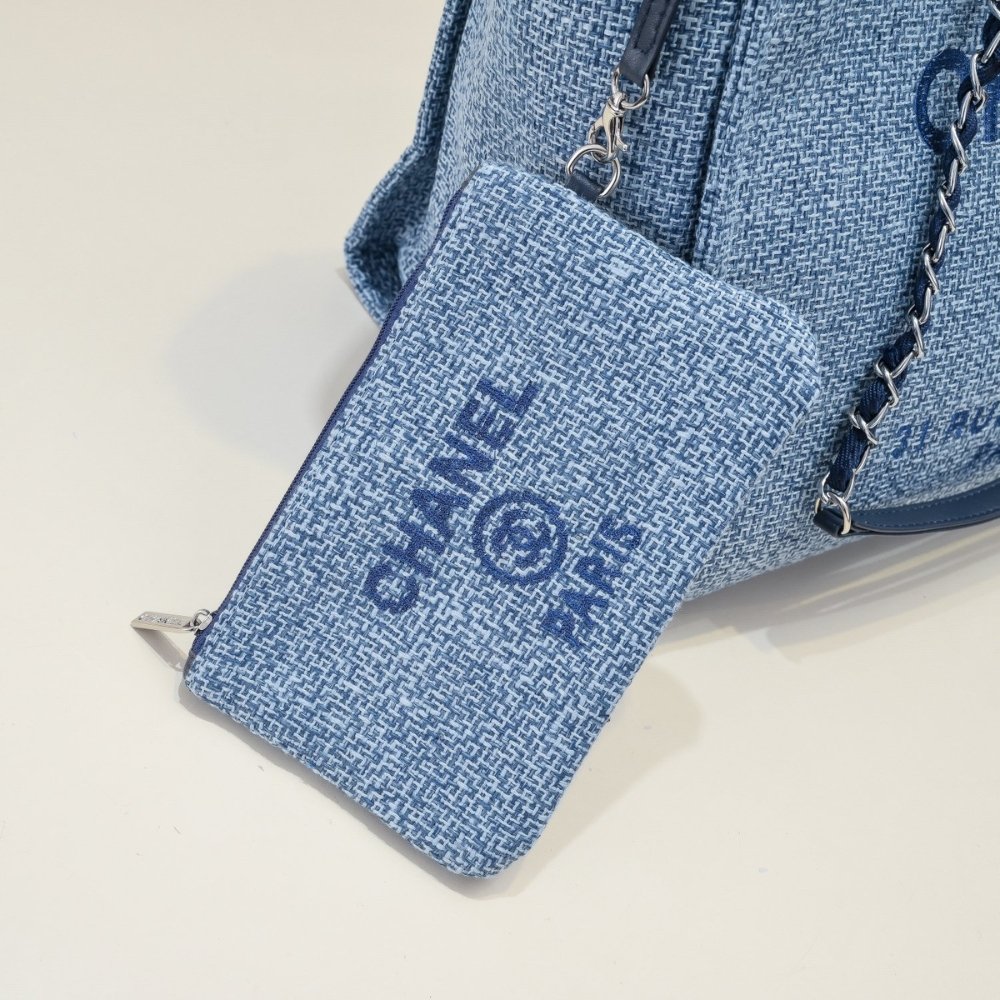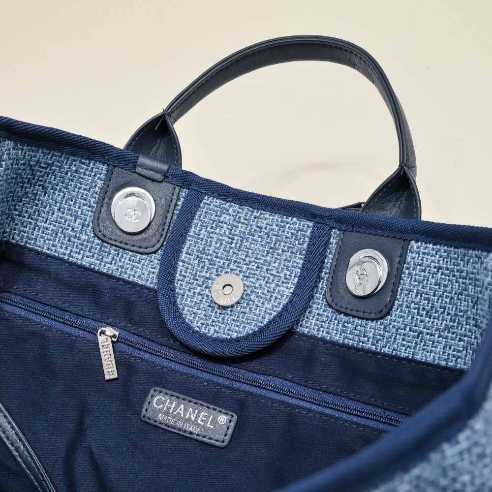 Chanel Large Deauville Tote Bag Bicolor Blue 40cm