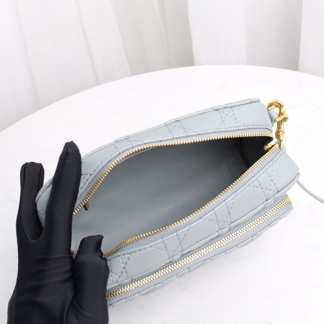 Replica 1:1 – Dior Caro Double Pouch Supple Calfskin Cloudy Gray 19cm