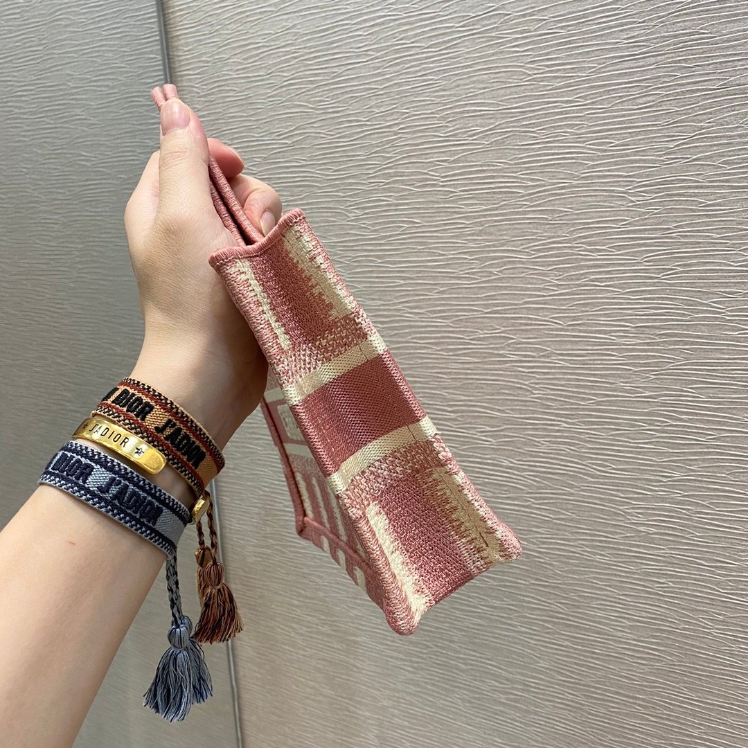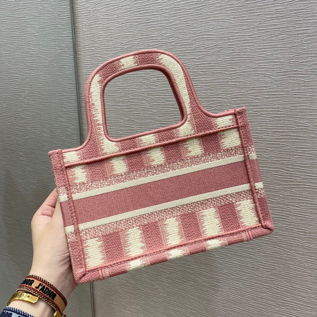 Replica 1:1 – Dior Mini Book Tote D Stripes Pink 23cm