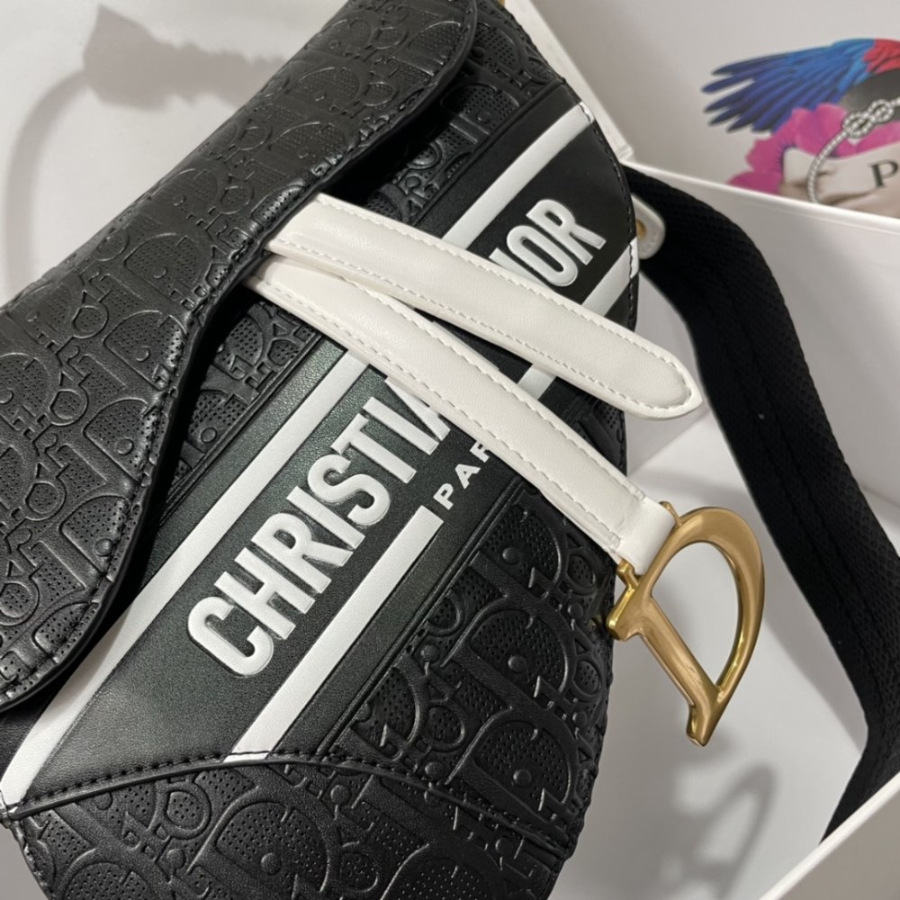 Replica 1:1 – Dior Saddle Handbag Oblique Perforated White 25cm