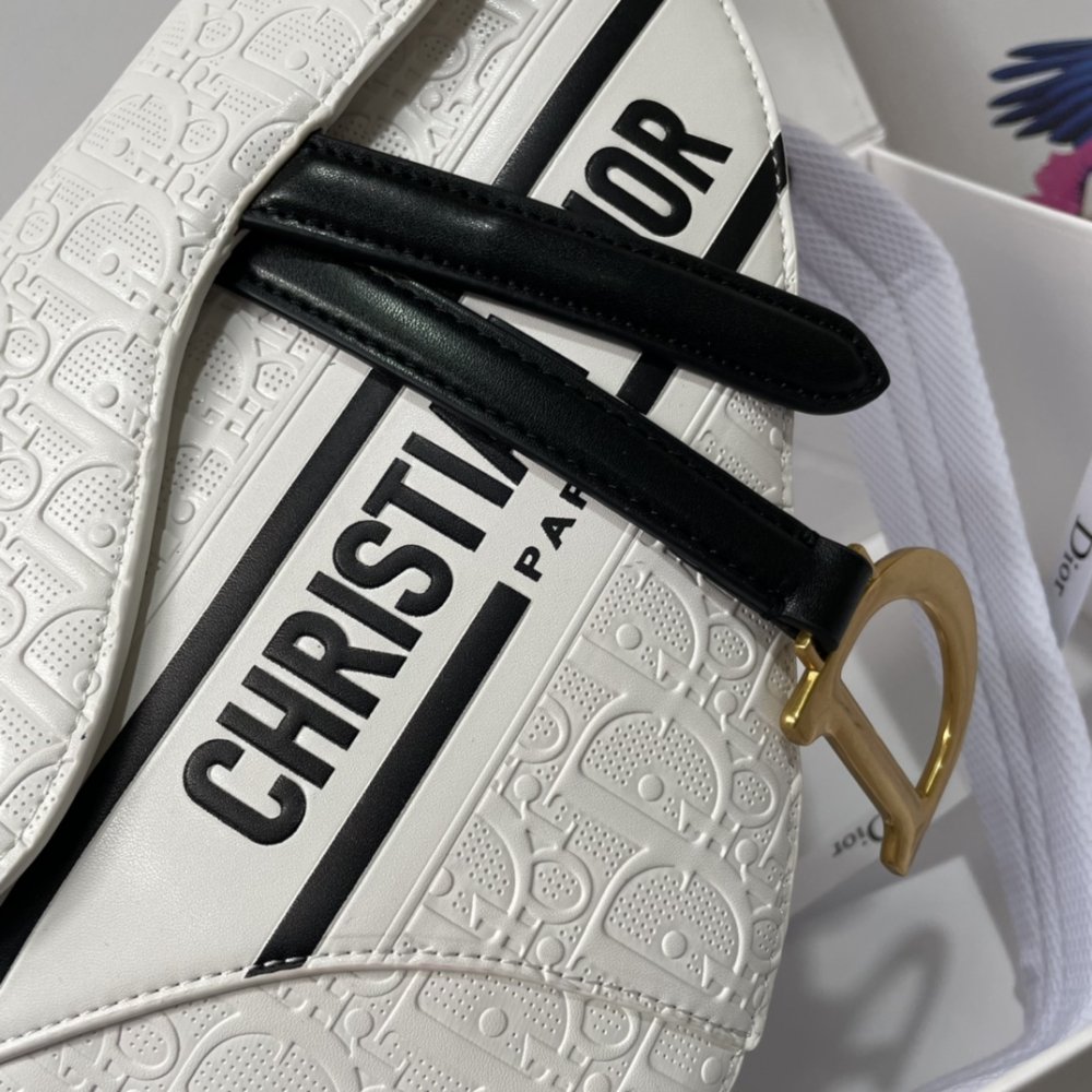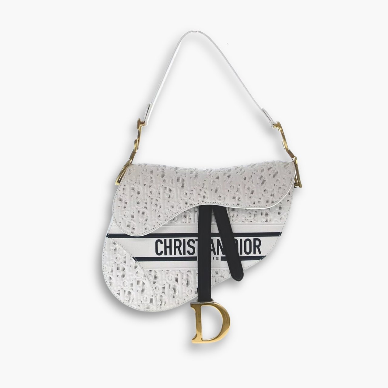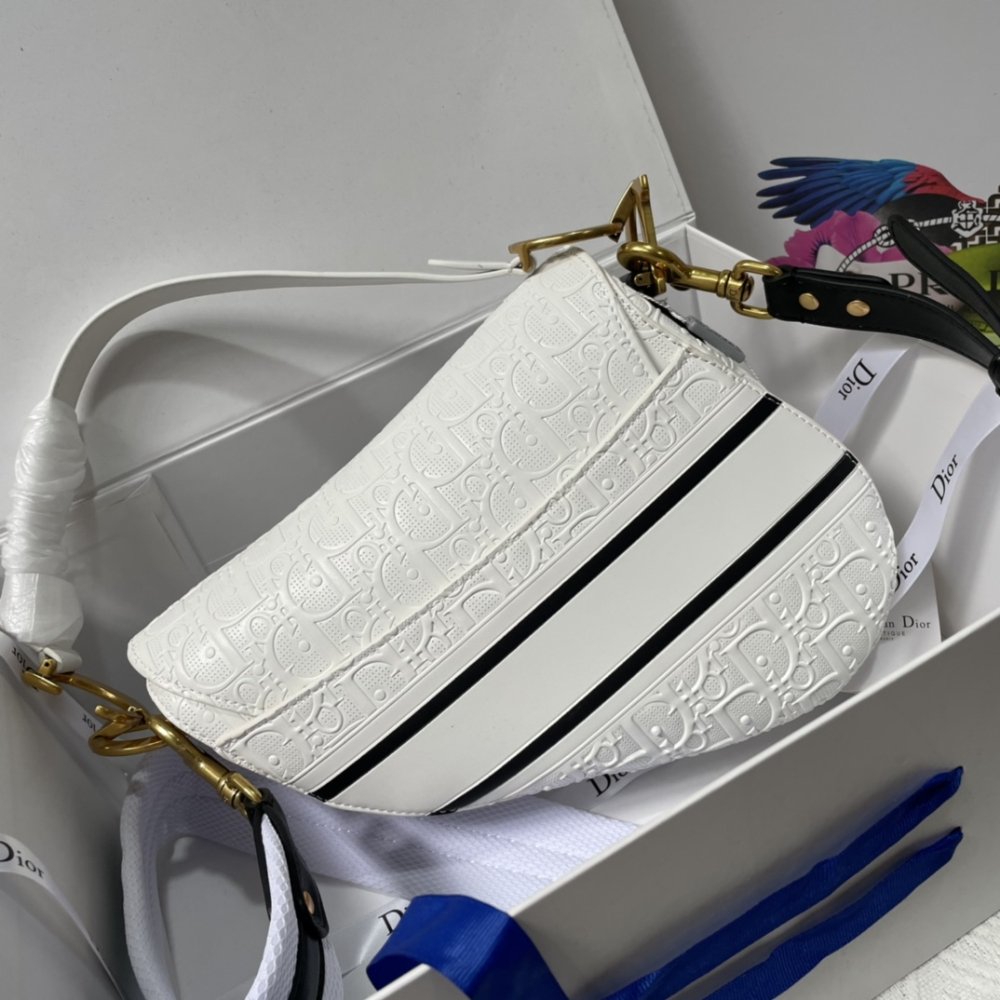 Replica 1:1 – Dior Saddle Handbag Oblique Perforated White 25cm