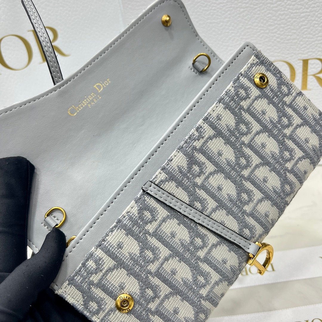 Replica 1:1 – Dior Saddle Long Wallet with Chain Gray 19cm S5614CTZQ M932