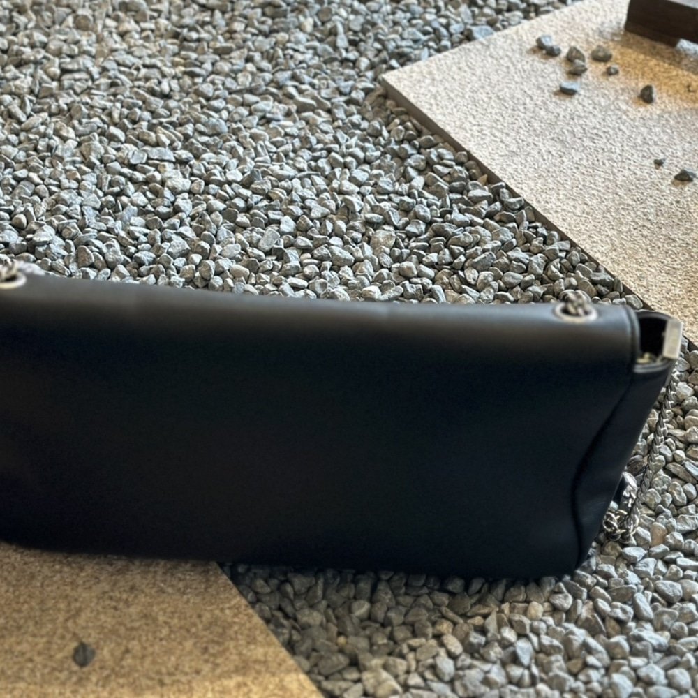 Iconic large Baguette bag with chain, distinguished by an oversized soft construction. Featuring a front flap, magnetic clasp, and brown suede-lined internal compartment with a zip pocket. Can be worn over on shoulder or cross-body thanks to the slide-chain shoulder strap.