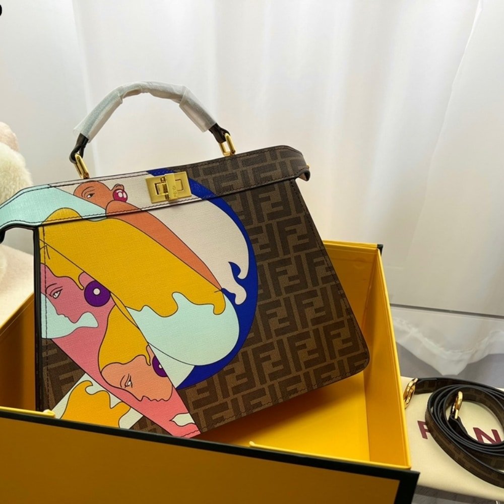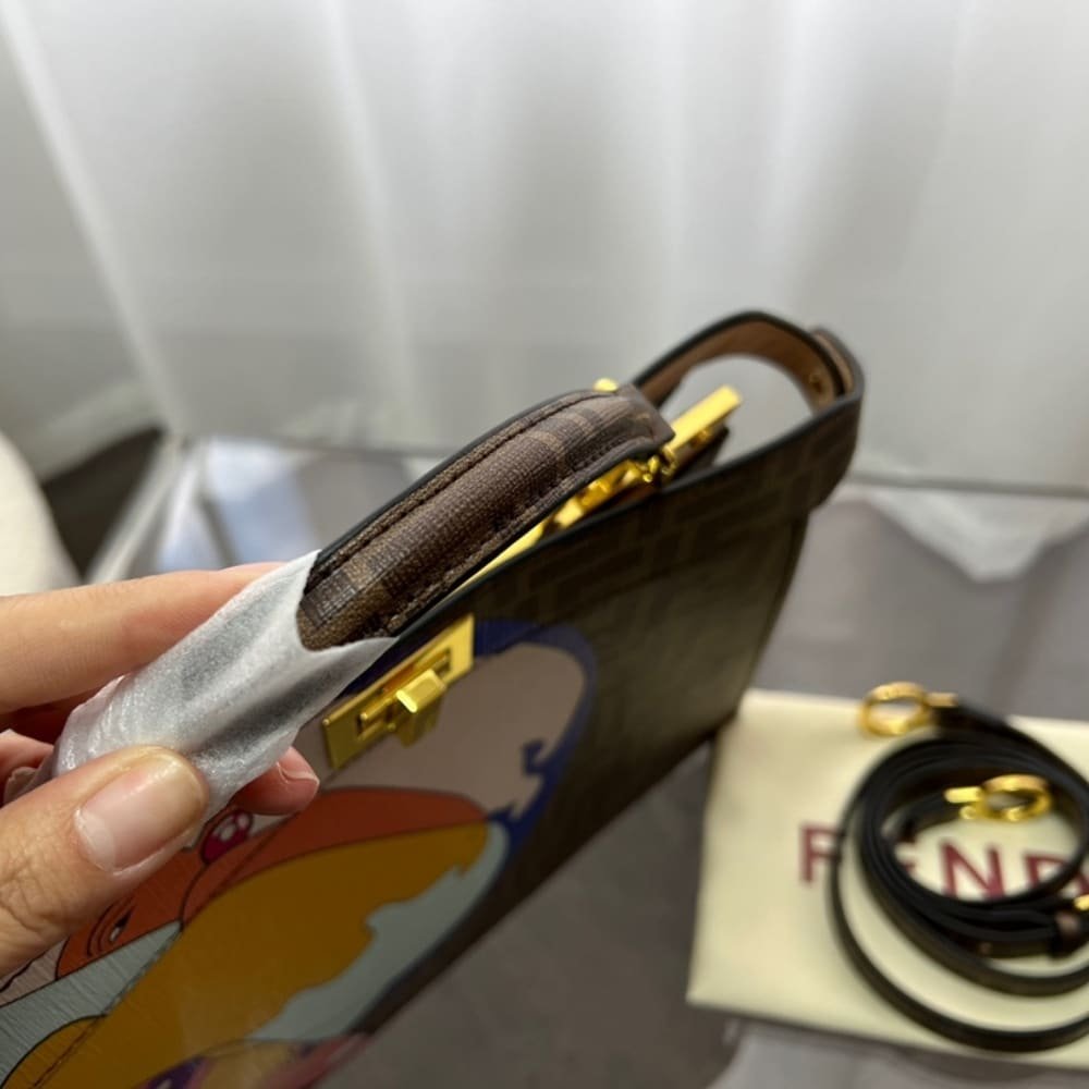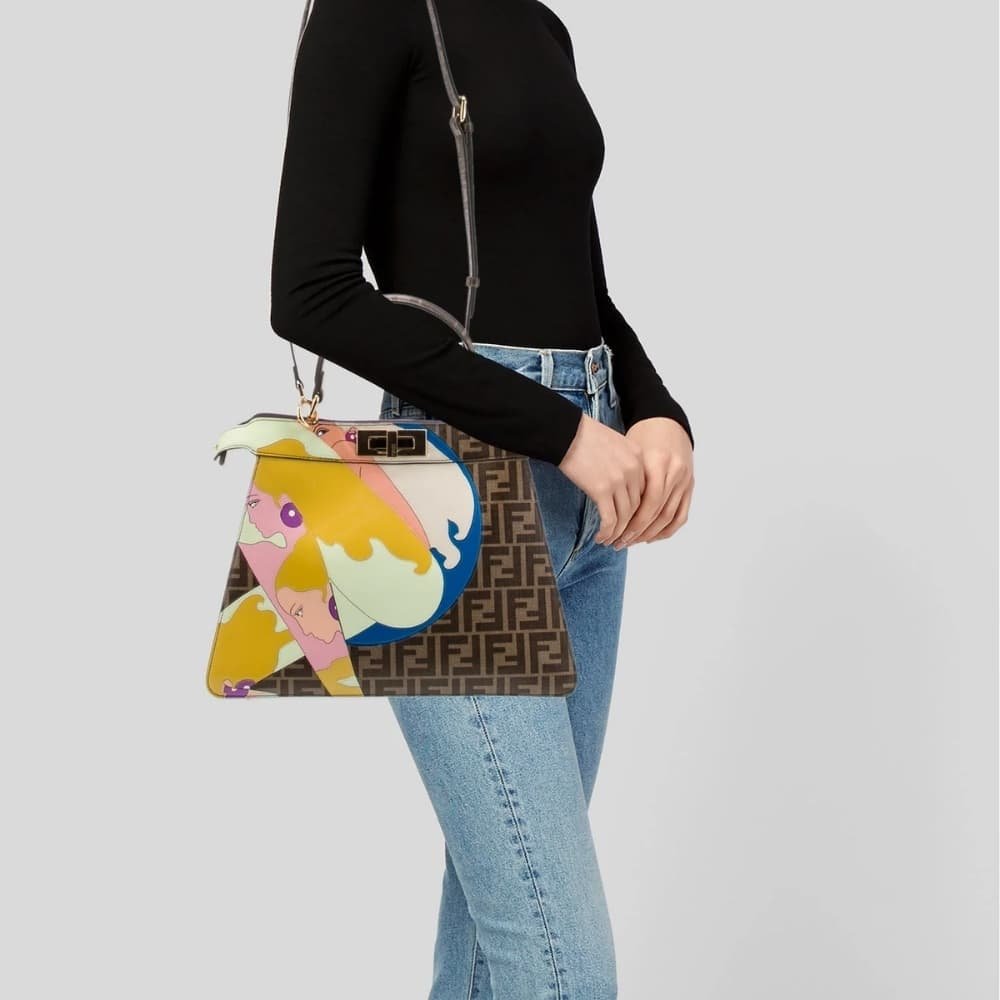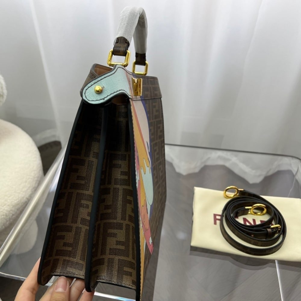 Iconic Peekaboo bag, the epitome of Fendi craftsmanship and creativity. A timeless icon, the Peekaboo was created in 2009. Like the children’s game it takes its name from, peek-a-boo, the bag plays with the beauty showcased on the outside and that concealed on the inside. Peekaboo ISeeU bag featured in iconic Fendi Zucca coated canvas on the exterior with artistic design.