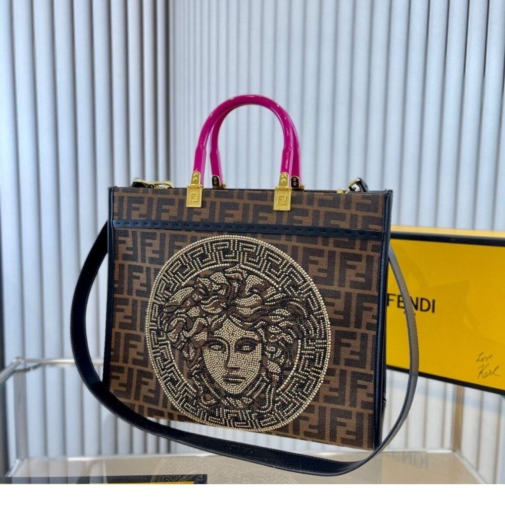 Fendi X Versace Fendace Sunshine Small Tote Bag FF Brown 35cm