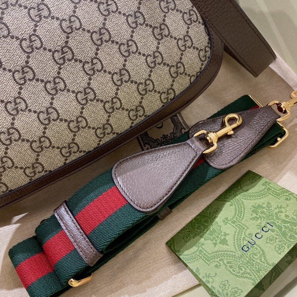 Coming from the House’s archives, the Interlocking G logo is reintroduced for this new collection. The gold-toned hardware adds a defined vintage touch, enriching the design with timelessness. The GG Supreme canvas top handle bag is completed by two interchangeable straps.