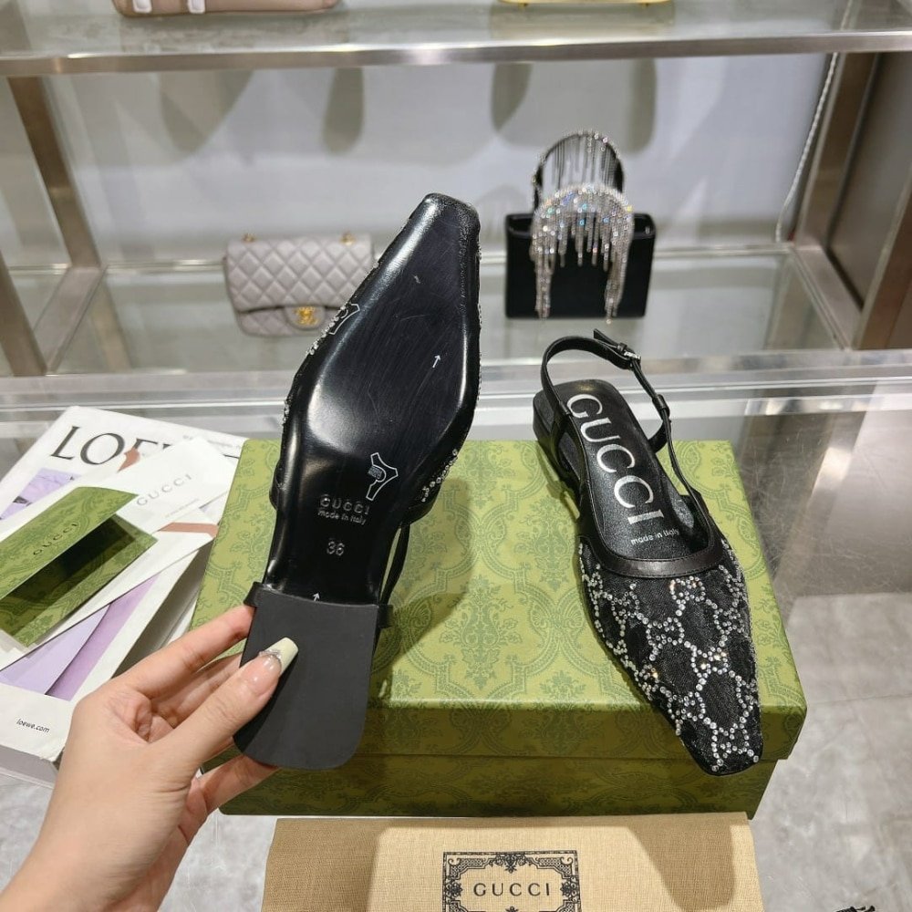 Replica 1:1 – Gucci Demi Crystal GG Slingback Ballerina Flats