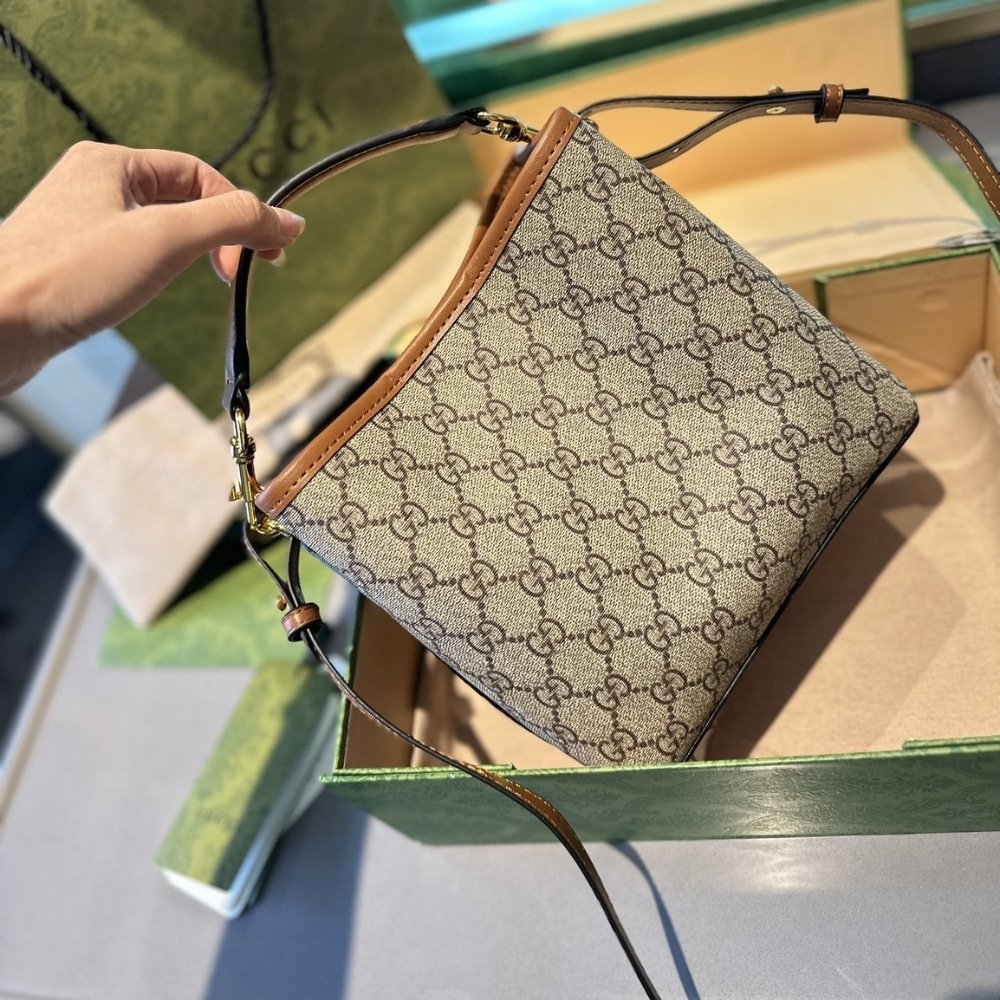 Gucci GG Emblem Mini Bucket Bag Beige 21cm 815118 FAD6L 9758