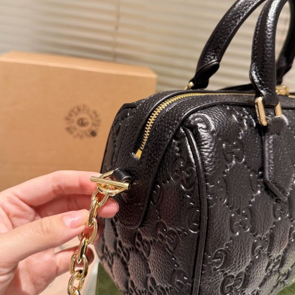 Replica 1:1 – Gucci GG Emblem Small Top Handle Bag Black 26cm 815255 AAEEM 1000