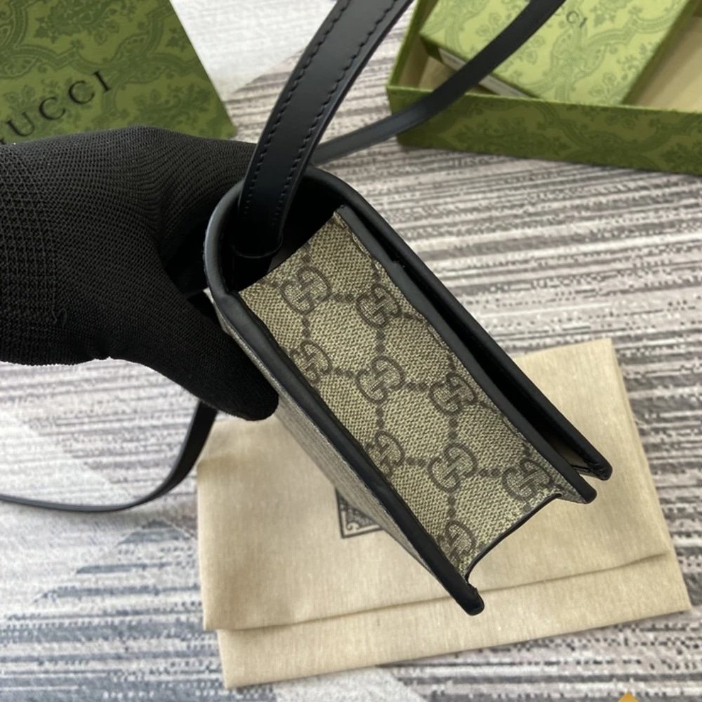 Gucci GG Emblem Super Mini Shoulder Bag Black 20cm 820688 FAD6L 9741