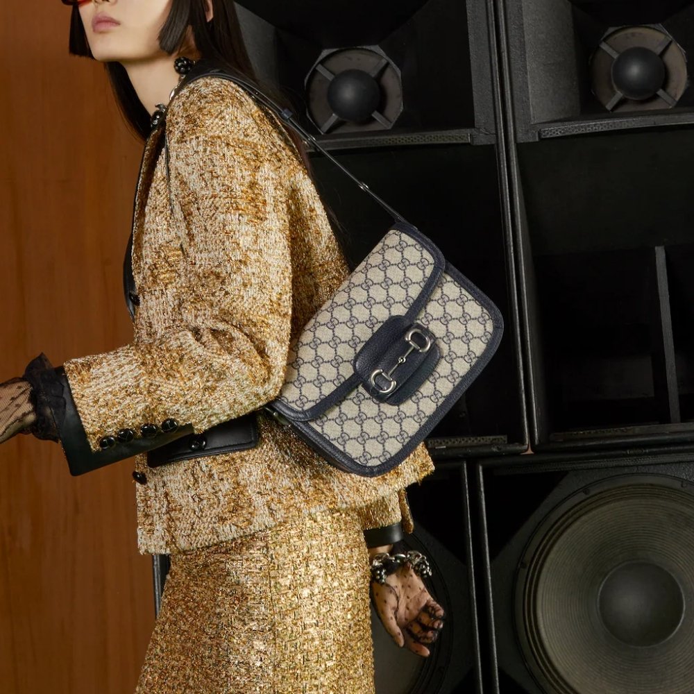 Introduced for Cruise 2020, the Gucci Horsebit 1955 bag is recreated from an archival design. With the same lines and forms first introduced over six decades ago, the accessory unifies the original details with a modern spirit, highlighting the Horsebit. Part of Gucci’s genetic code, the double ring and bar design has been established as one of the most distinctive elements among the House symbols borrowed from the equestrian world.