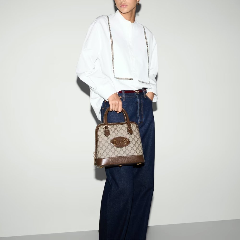With the same lines and forms first introduced over six decades ago, the accessory unifies the original details with a modern spirit, highlighting the Horsebit. Part of Gucci’s genetic code, the double ring and bar design has been established as one of the most distinctive elements among the House symbols borrowed from the equestrian world. A brown leather trim completes the style with an elevated feel.