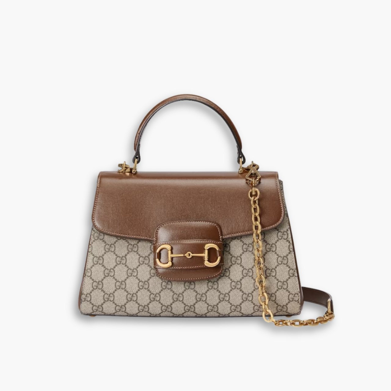 With the same lines and forms first introduced over six decades ago, the accessory unifies the original details with a modern spirit, highlighting the Horsebit. Part of Gucci’s genetic code, the double ring and bar design has been established as one of the most distinctive elements among the House symbols borrowed from the equestrian world. A brown leather trim completes the style with an elevated feel.