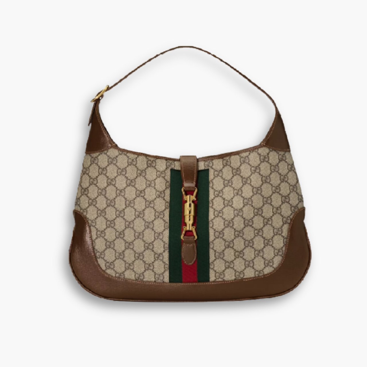 The reintroduction of the Jackie bag for Fall Winter presents a new take on a historical Gucci icon. Brought back to the forefront, the recognisable shape is presented in GG Supreme canvas.