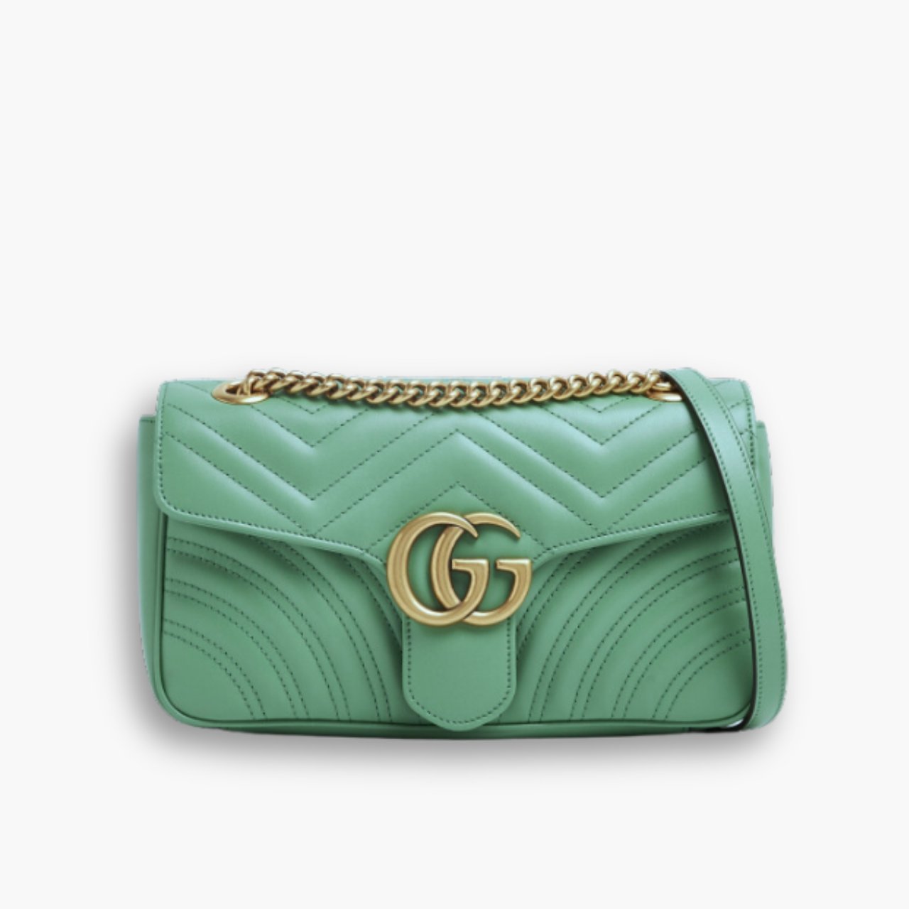 Gucci updates its iconic GG Marmont Matelassé shoulder bag with a new color and geometric quilting to create a modern piece with everlasting appeal. It’s constructed to a soft, structured shape with antique gold-toned hardware, double G embellishment.