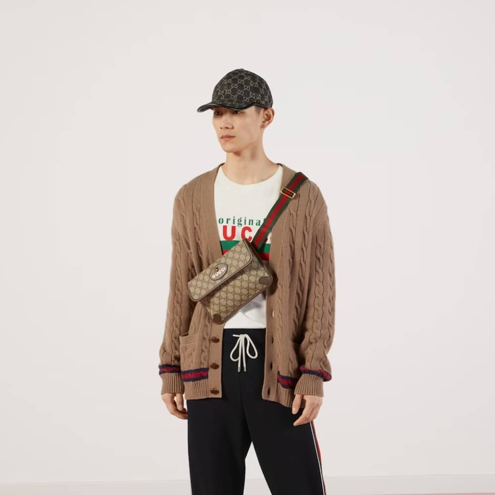 The Gucci Neo Vintage Belt Bag 22cm (493930 9C2VT 8745) in Beige GG Supreme canvas blends vintage charm with modern functionality. Featuring the signature oval Gucci leather tag with a feline head detail, it offers a compact yet spacious design. With an adjustable belt strap, this versatile piece is perfect for hands-free everyday wear.