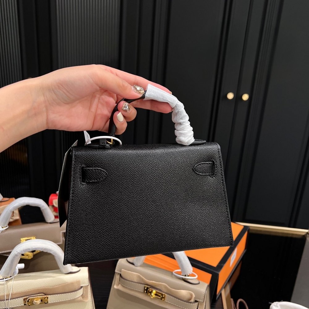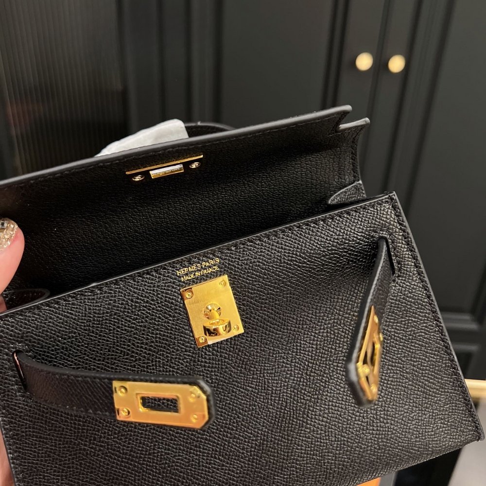 Replica 1:1 – Hermes Kelly Mini Epsom Handbag Black And Gold 20cm