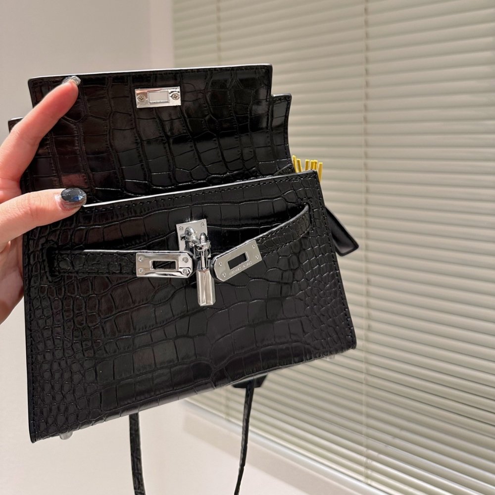 Replica 1:1 – Hermes Kelly Mini Handbag Matte Alligator Black 20cm