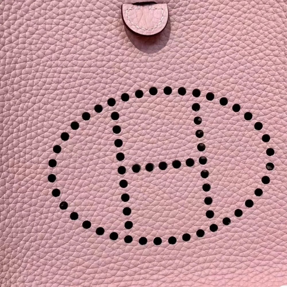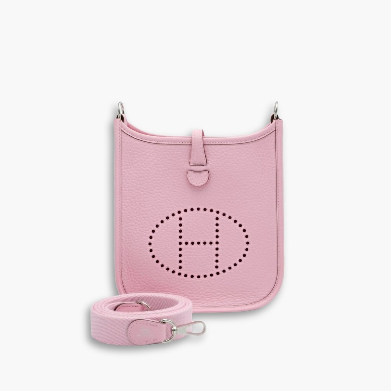 The Hermès Mini Evelyne Bag in Rose Sakura exudes feminine charm with its soft pink hue. Perfectly balancing elegance and youthful energy, this petite bag is crafted for the modern, dynamic woman. Its compact size and iconic design make it both stylish and functional for everyday adventures.