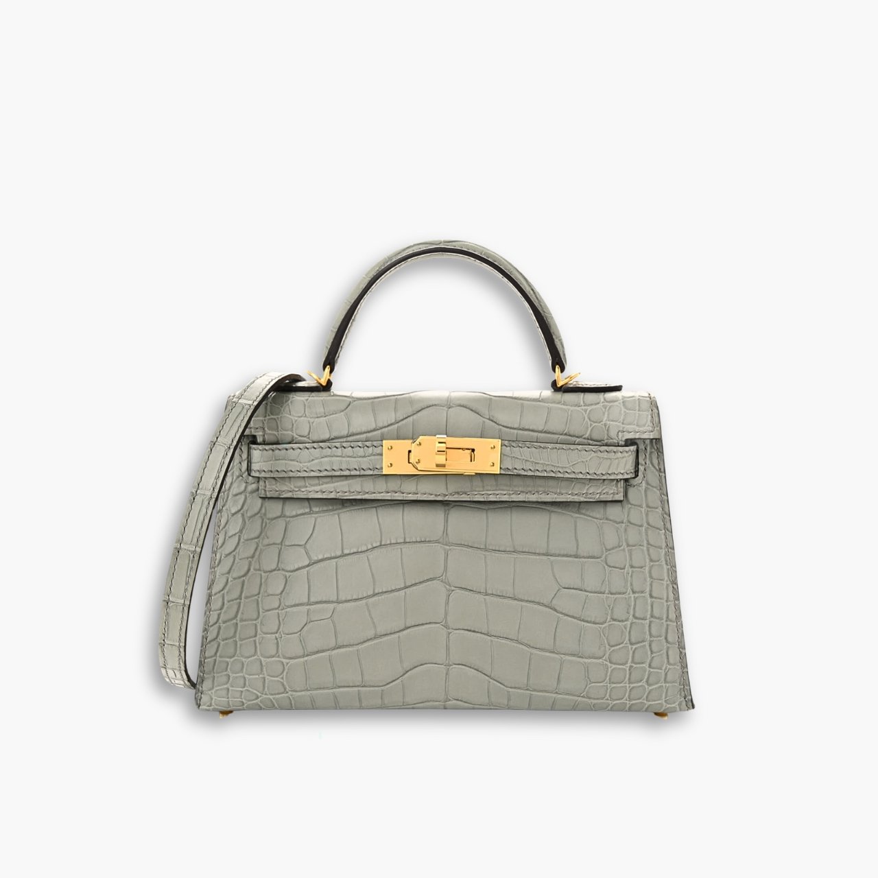 Hermes Mini Kelly Handbag Alligator Gris Mouette 22cm