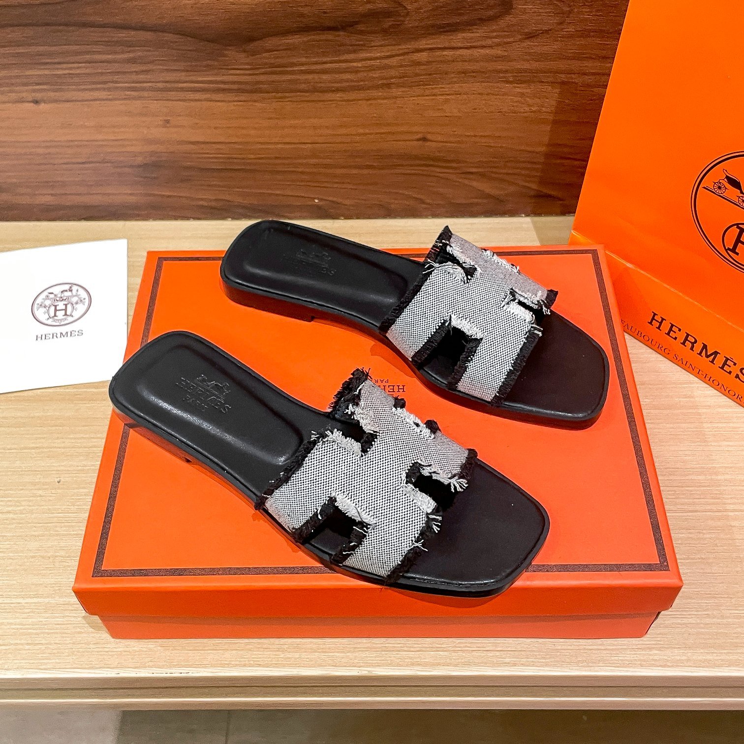 Sandal in fringed H canvas with iconic “H” cut-out. An iconic Hermès style, this silhouette is an essential piece in every wardrobe.