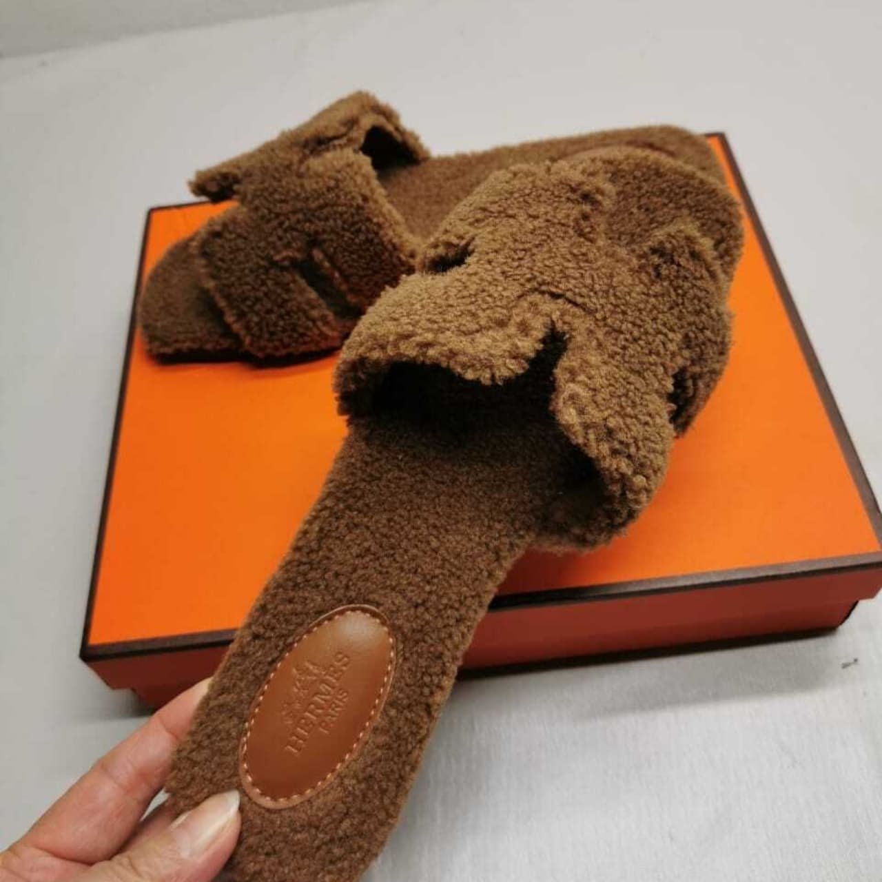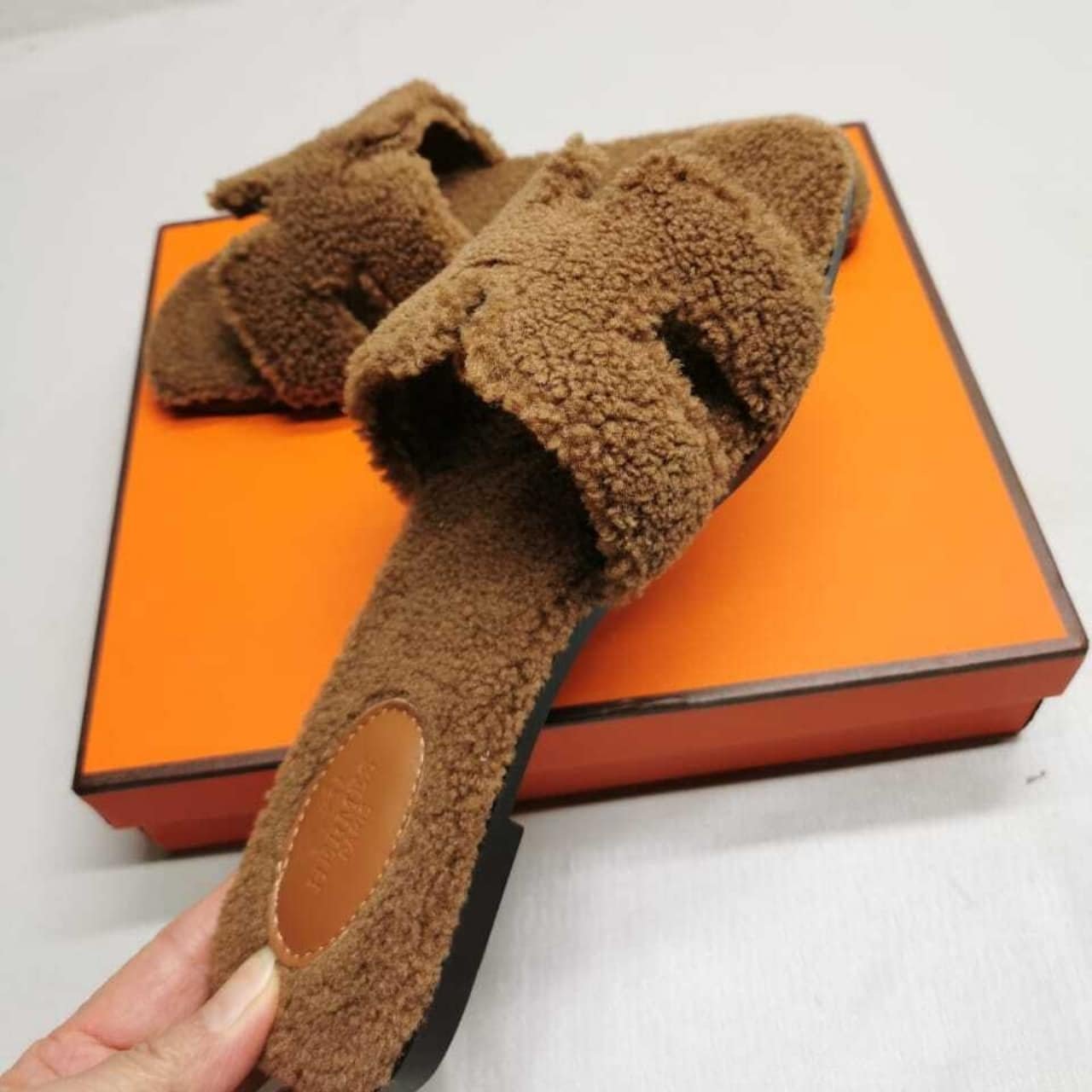 Replica 1:1 – Hermes Oran Teddy Bear Slipper Sandals Cognac