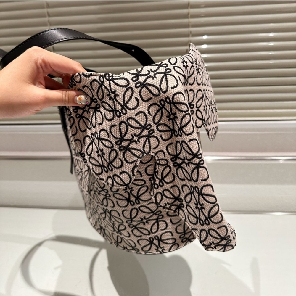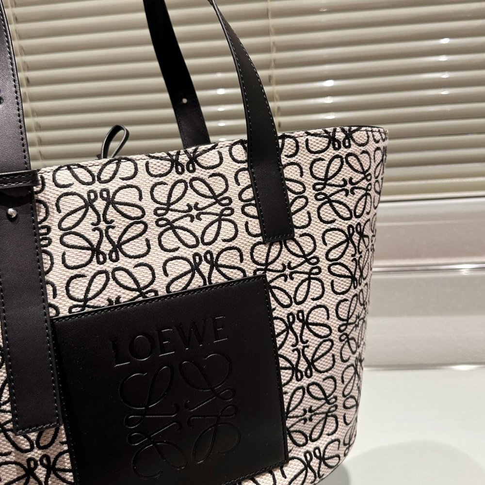 Replica 1:1 – Loewe Elephant Basket Bag Anagram Jacquard Black And White 29cm