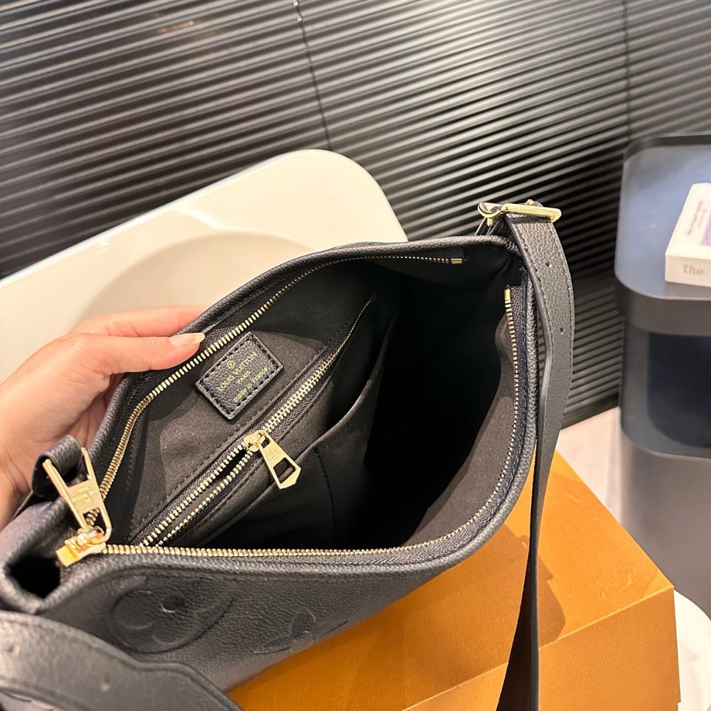 The new CarryAll features an embossed Monogram pattern on supple cowhide leather. Featuring an elegant design, secure zipper closure and a sophisticated interior, this Hobo-style bag is ideal for everyday use. The adjustable strap allows the bag to be worn as a crossbody, over the shoulder or in a handheld form.