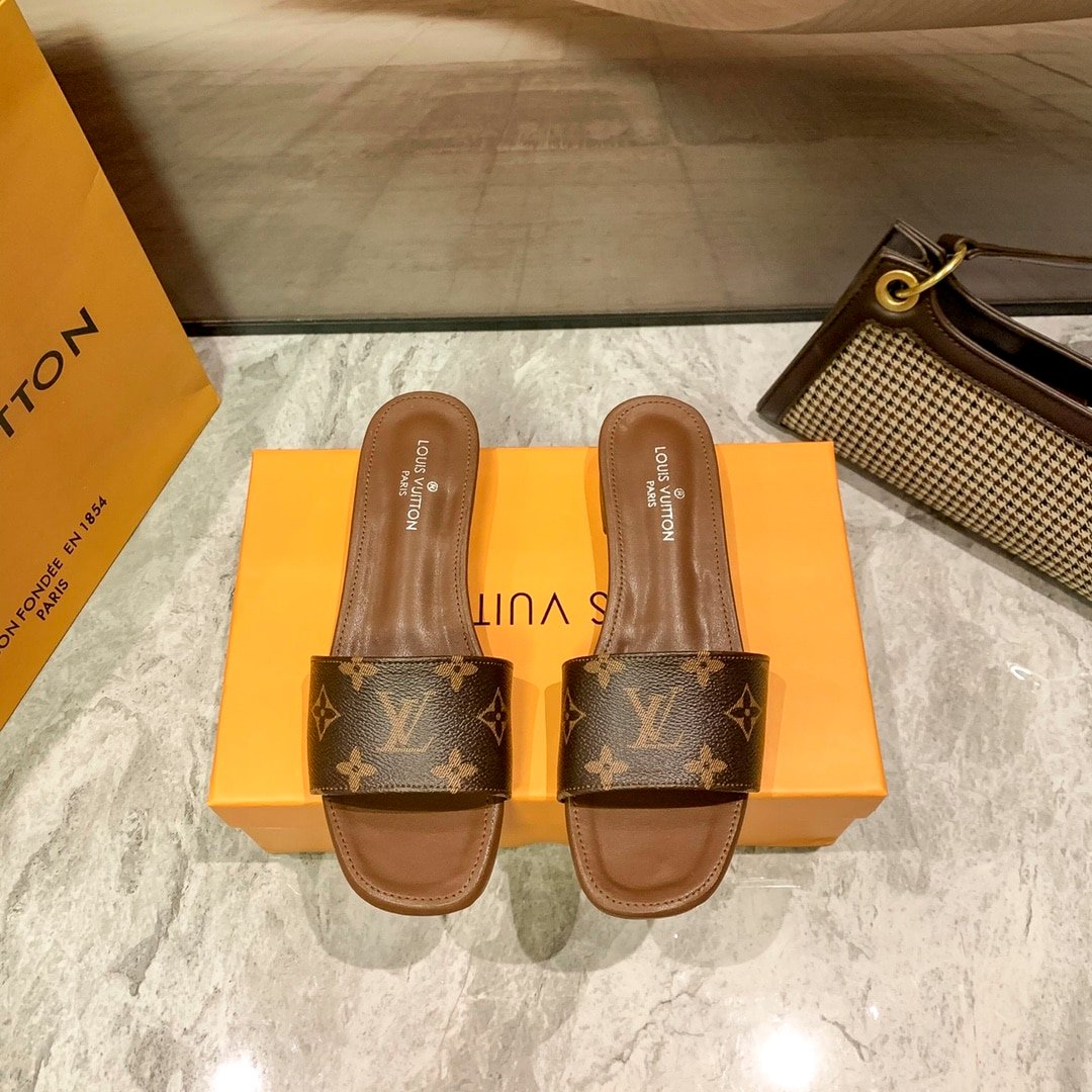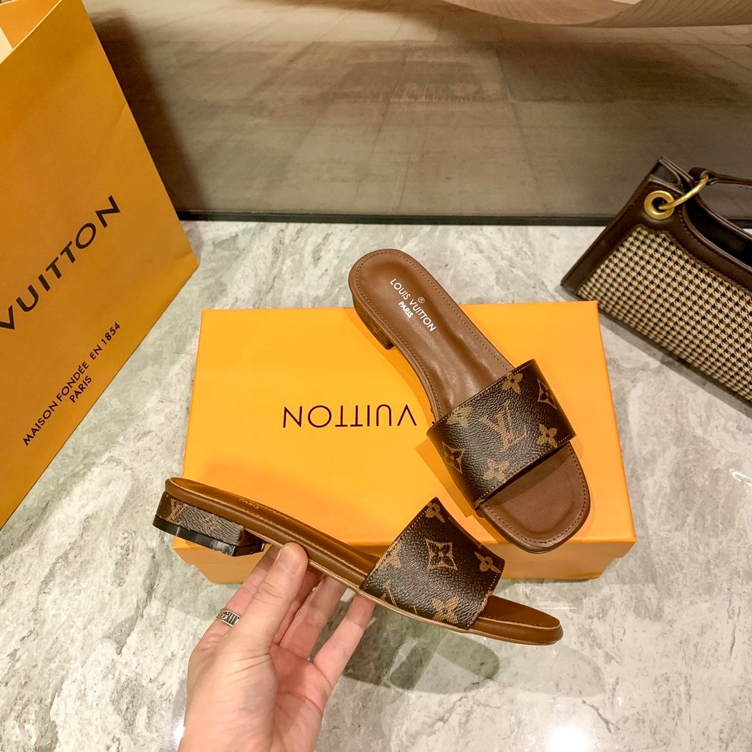 Replica 1:1 – Louis Vuitton Lock It Flat Mule Monogram Brown