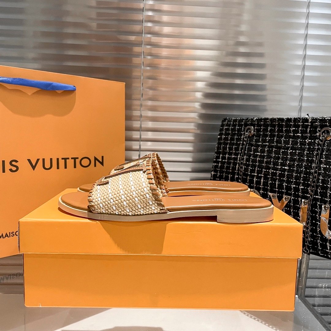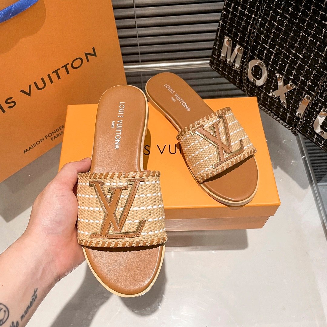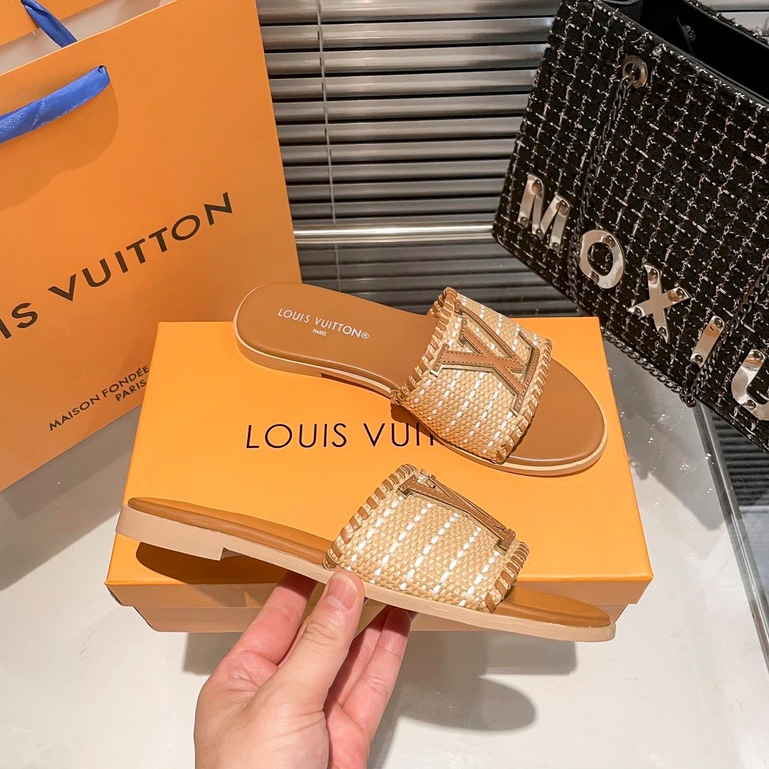 Replica 1:1 – Louis Vuitton Lock It Flat Raffia Mules Brown