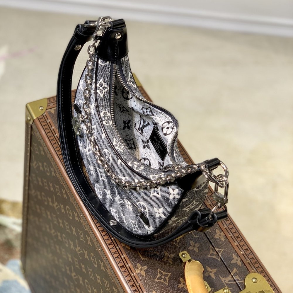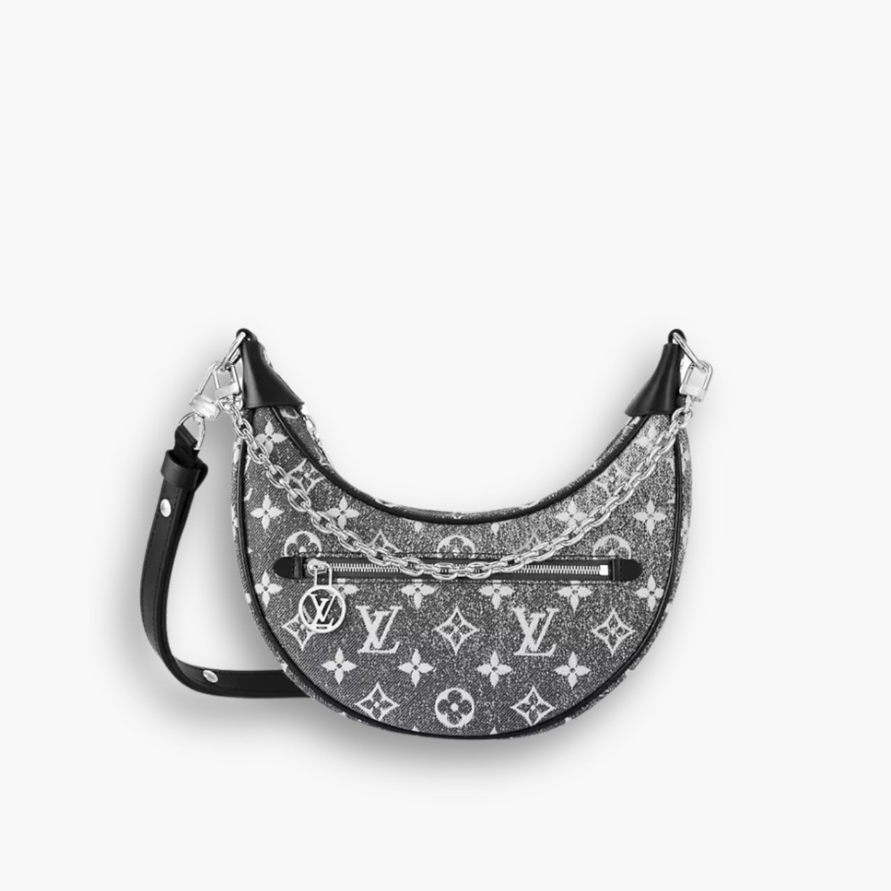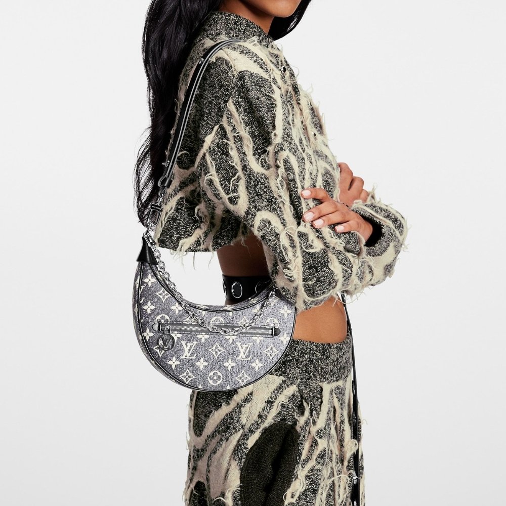 This edition of the Loop PM bag wears new Monogram Jacquard Denim, introduced at the Cruise 2023 show. The gray colorway and stone-washed effect give the bag a modern rawness, in contrast to the gleaming silver-tone hardware. The reverse jacquard lining lends a surprising touch; the Louis Vuitton Circle zip pull adds a signature flourish.