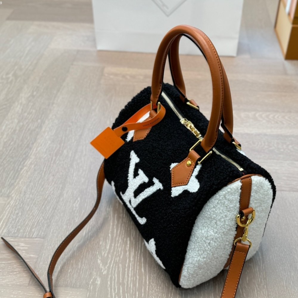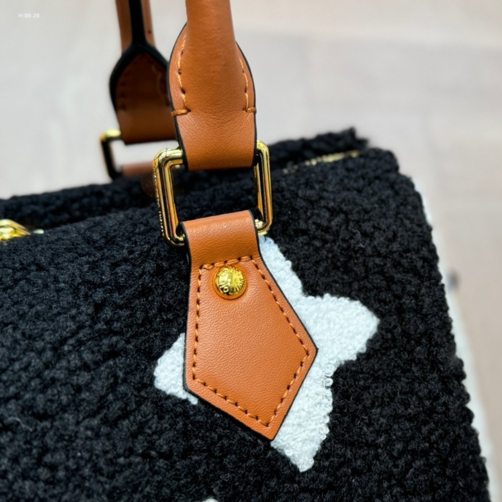 Replica 1:1 – Louis Vuitton Monogram Teddy Speedy Bandouliere Black White 25cm