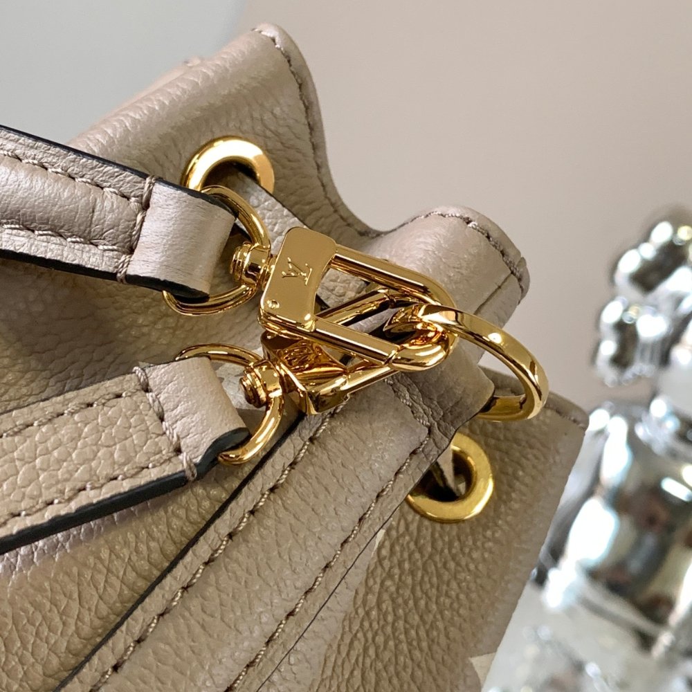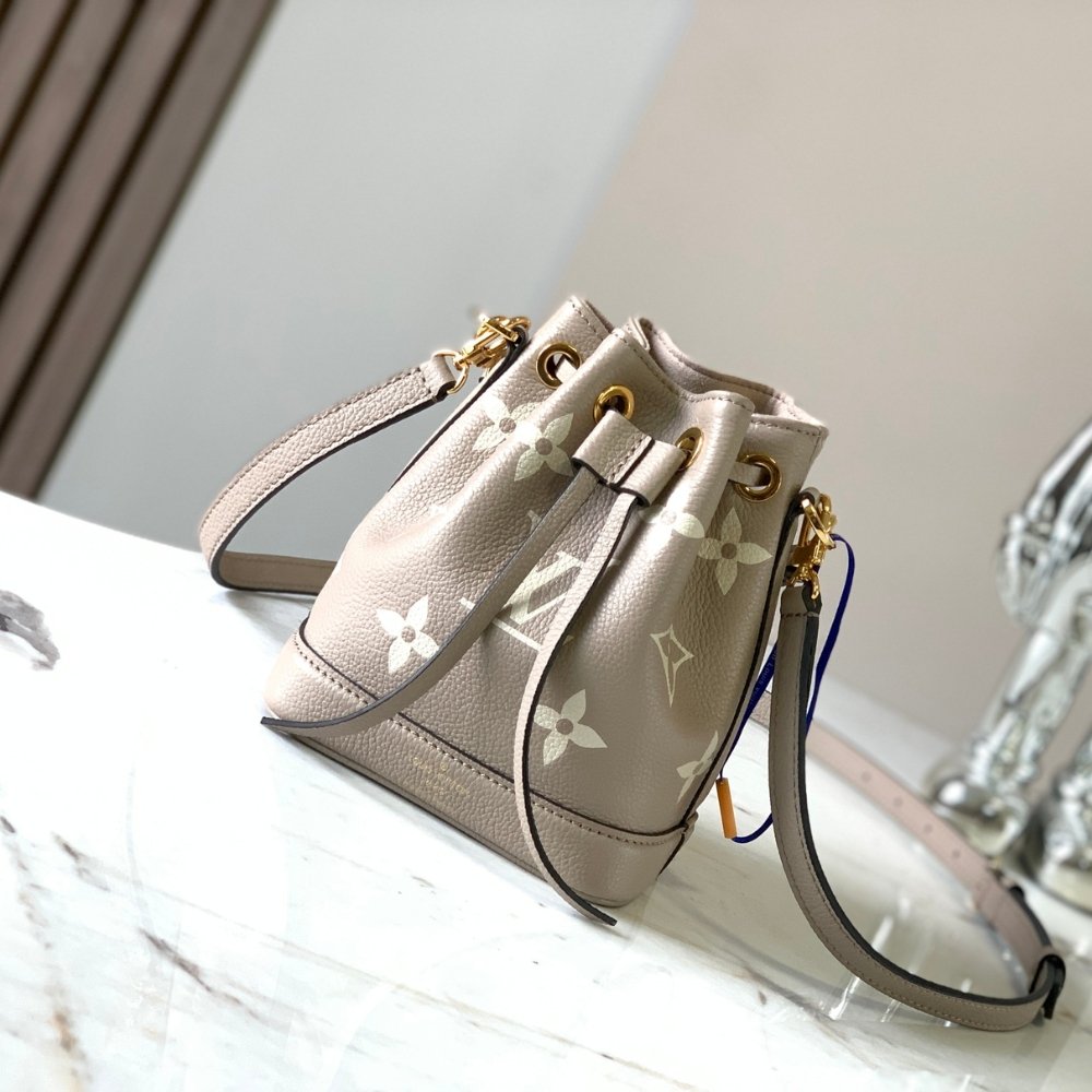 This bicolor version of the Nano Noé is crafted from supple Monogram Empreinte leather, embossed with the Monogram pattern. This miniature replica of the iconic Noé bag is a stylish way to carry everyday essentials.