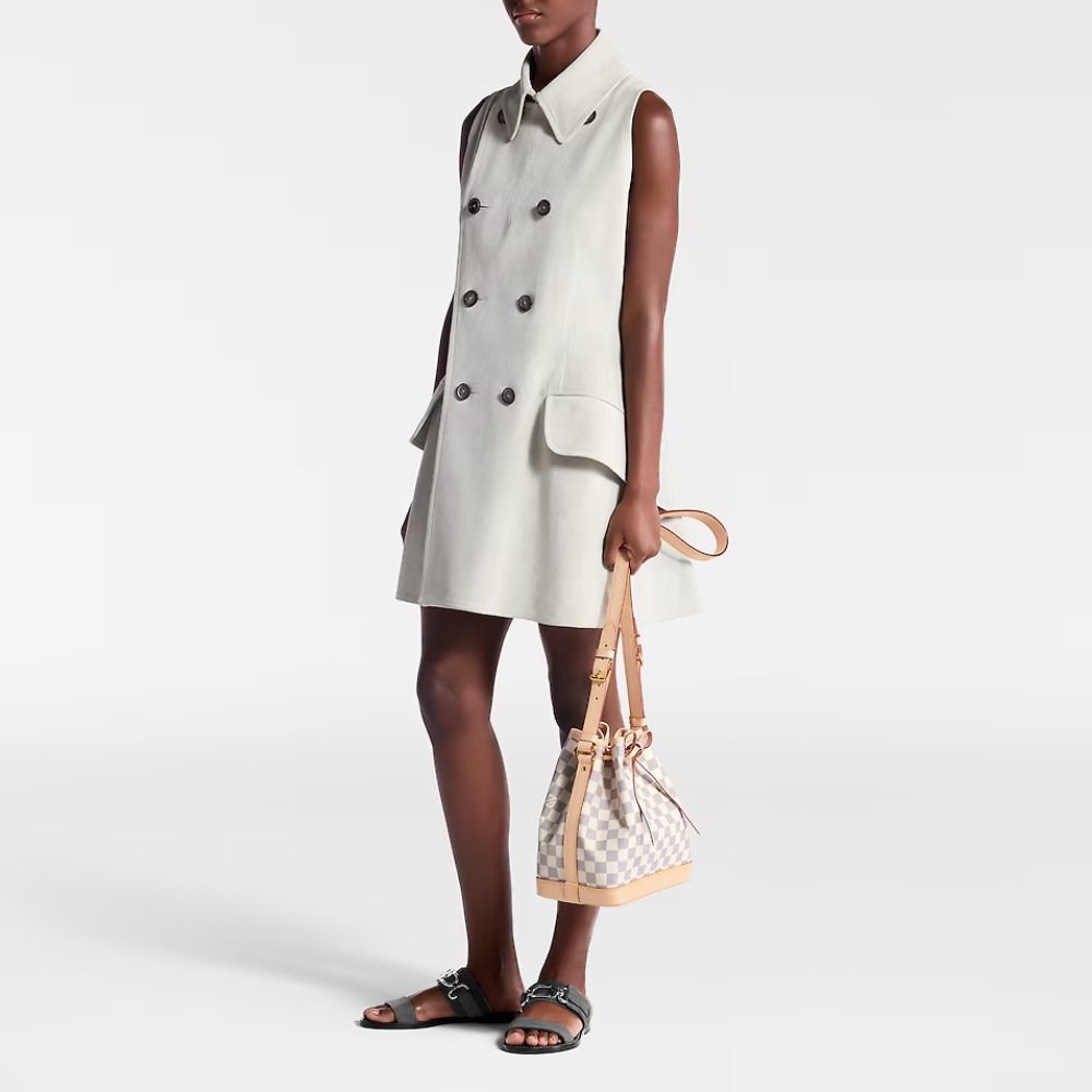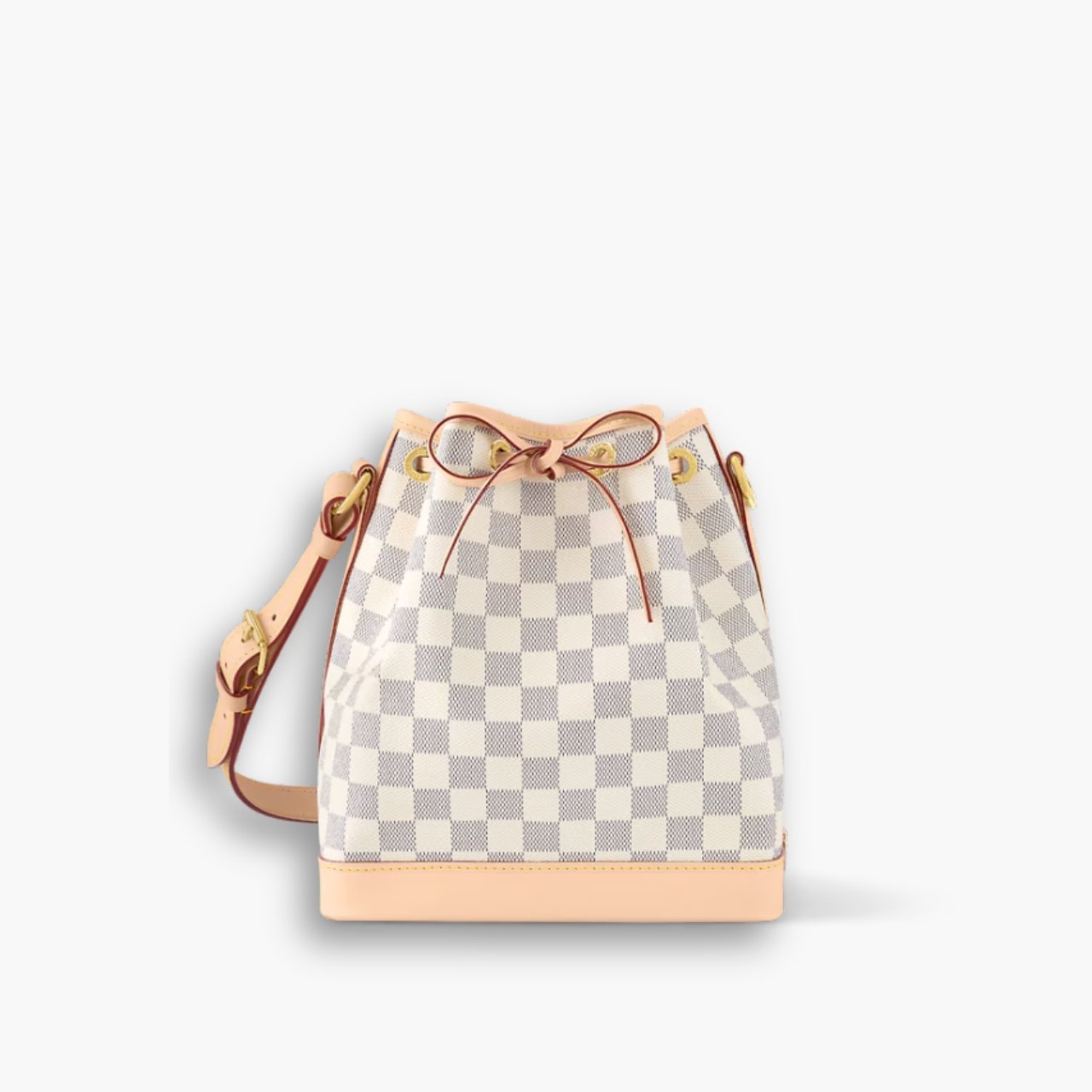 The Noé BB bucket bag harks back to a design from 1932. A Champagne producer asked Gaston-Louis Vuitton to develop a sturdy, stylish bag in which he could transport five bottles of bubbly. This charming version in body-friendly Damier Azur canvas retains key features of the original – the iconic shape and drawstring closure – but is made for modern life.