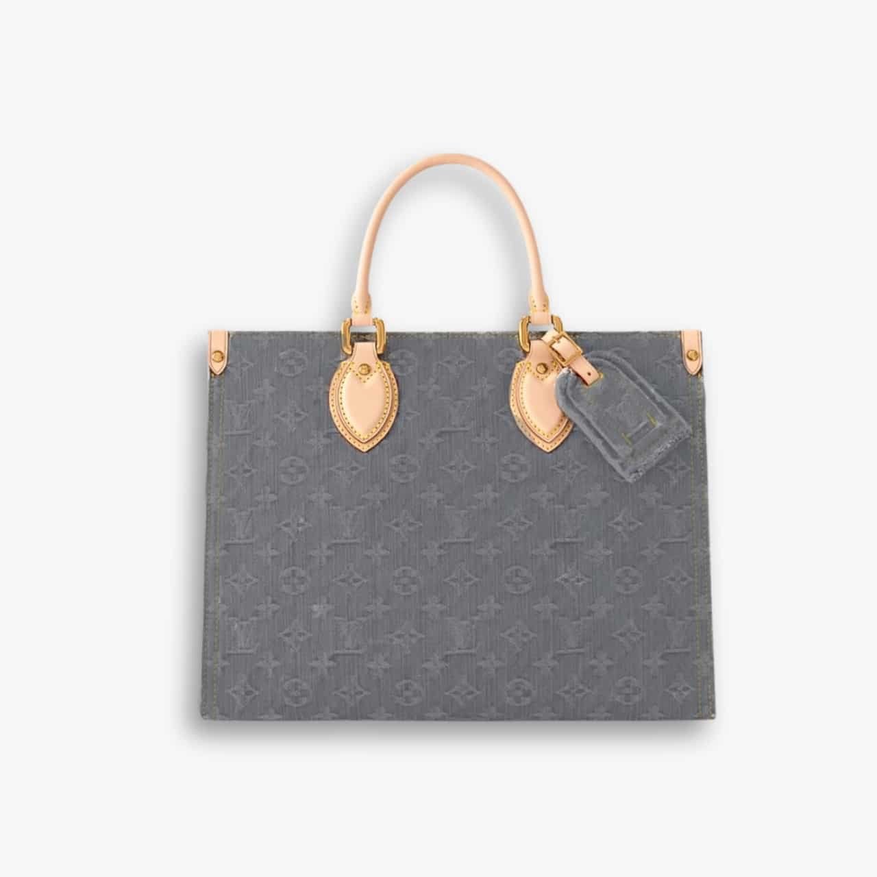This edition of the OnTheGo MM celebrates the return of the iconic Monogram Denim pattern from 2005. It is crafted from organic cotton that is skillfully woven with black and white threads, then bleached using a special Louis Vuitton technique to create a vintage-inspired finish. Sized to store a laptop, it is elevated with light gold-toned hardware and includes signature details such as the natural leather trims and a removable name tag.