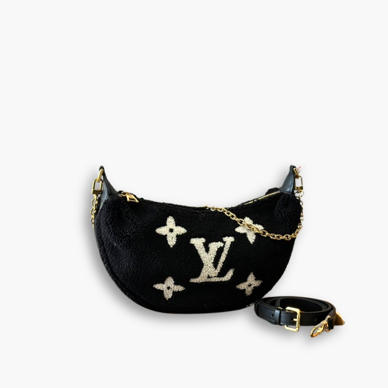 Replica 1:1 – Louis Vuitton Over The Moon Bag Monogram Giant Teddy Fleece Black 28cm