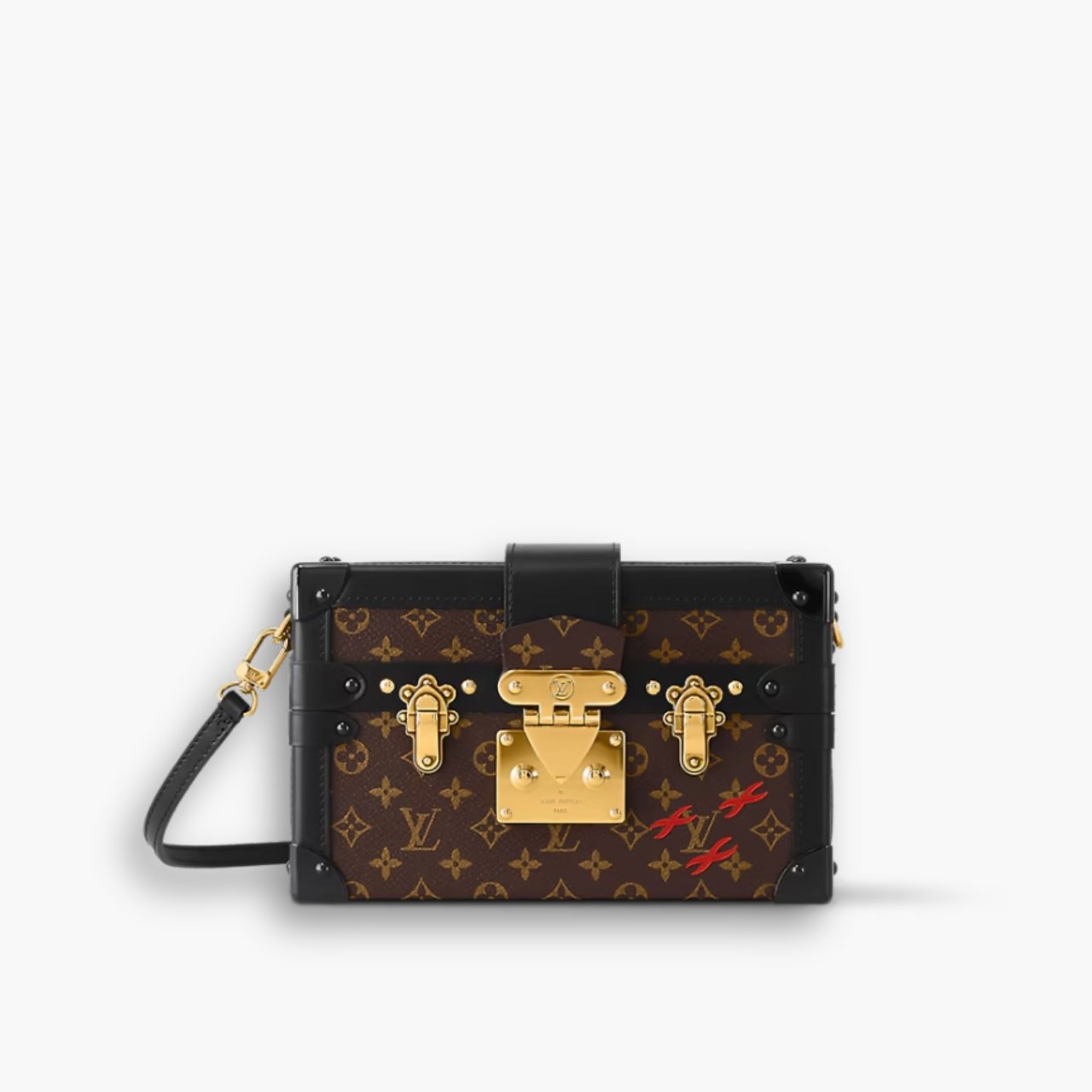 The Louis Vuitton Petite Malle Bag in Monogram, 19cm, is a chic nod to the brand’s heritage with its iconic trunk-inspired design. Compact yet luxurious, it features gold-tone hardware and refined details, making it a perfect statement piece for any occasion.