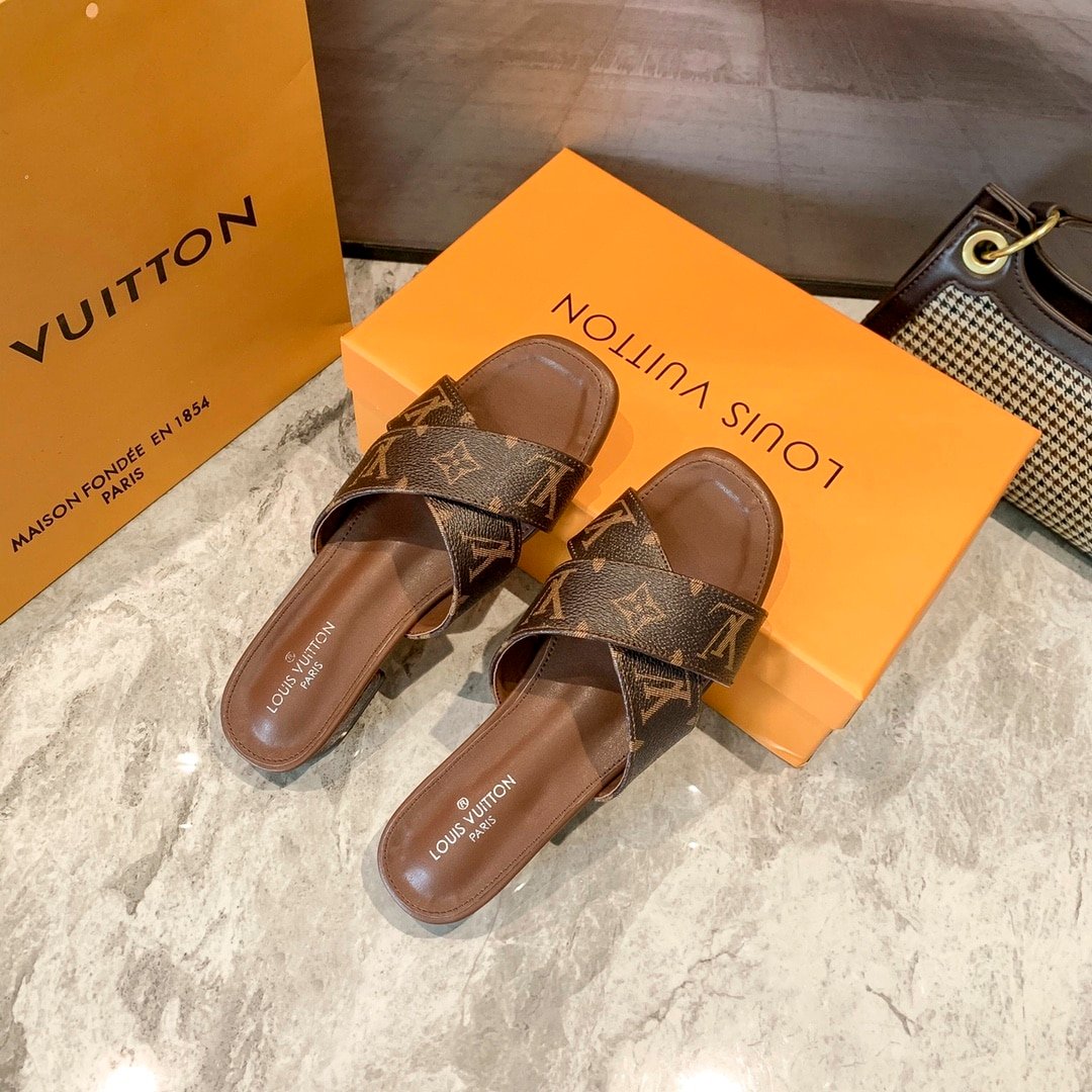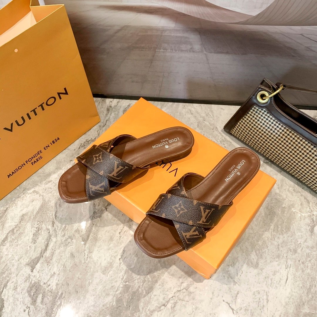 Replica 1:1 – Louis Vuitton Strappy Flat Mule Monogram Brown