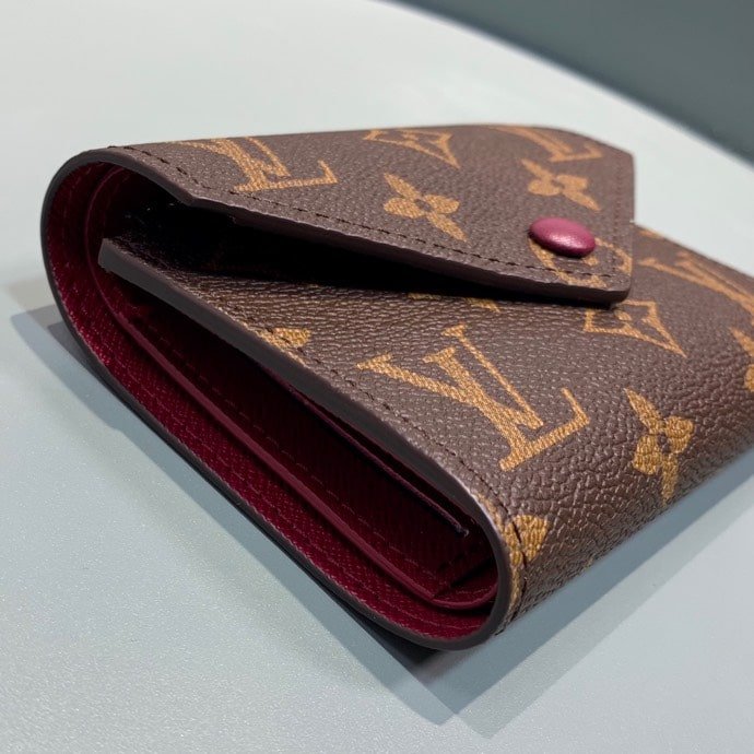 The Louis Vuitton Victorine Wallet (M41938) in Fuchsia (12cm) is a chic and compact accessory that combines elegance with functionality. Crafted from Monogram canvas with a vibrant fuchsia leather interior, this wallet features a secure snap closure, multiple card slots, a bill compartment, and a zippered coin pocket. Its refined design and practical layout make it a stylish everyday essential.