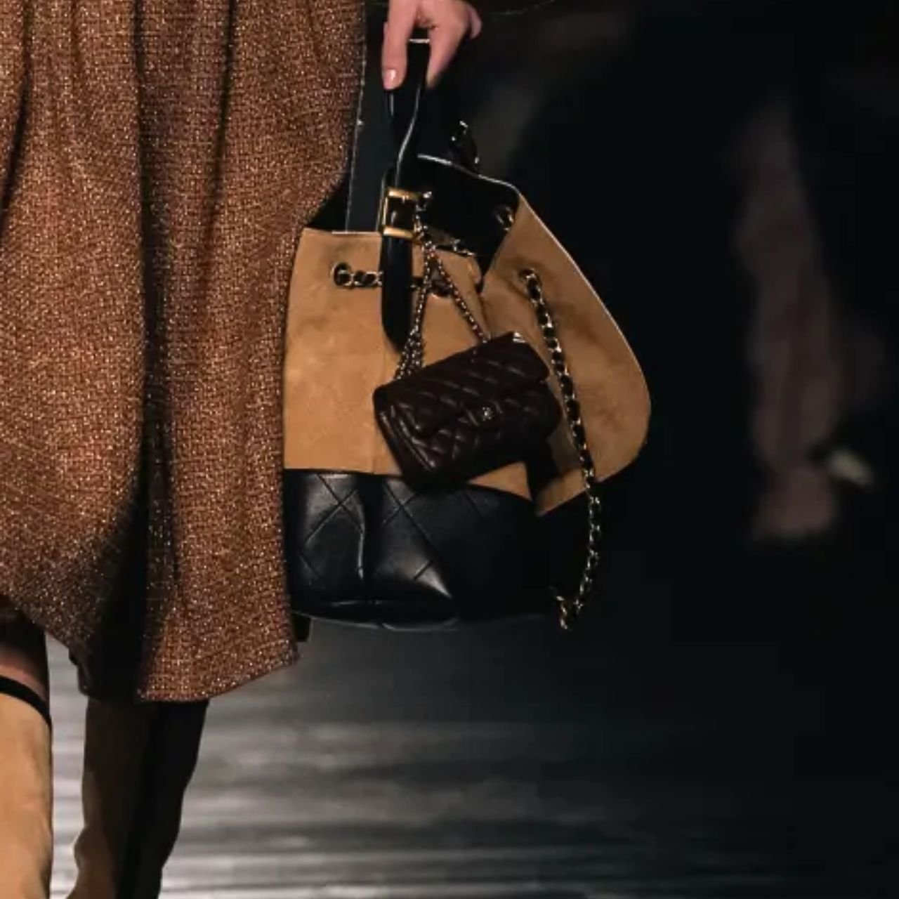Perfect Match: Chanel Shopping Bag Beige And Black 36Cm X Chanel Classic Mini Bag With Hook Black 12Cm
