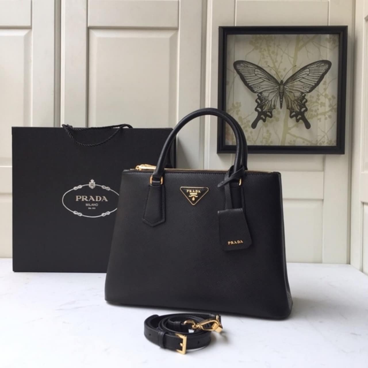 Replica 1:1 – Prada Saffiano Leather Double Black 25Cm